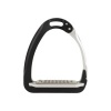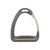 De brede roestvrijstalen antislip beugelzool heeft een grof profiel en extra lange gaten voor de afvoer van zand en water. De beugelzool is licht gekanteld, zodat de hak omlaag wordt gehouden. De afgeschuinde stijgbeugelriemophanging zorgt voor een goede beugelpositie, waardoor de voet in de juiste positie gehouden wordt. Dit geeft de ruiter meer stabiliteit en verbetert de beenligging.