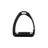 De brede roestvrijstalen antislip beugelzool heeft een grof profiel en extra lange gaten voor de afvoer van zand en water. De beugelzool is licht gekanteld, zodat de hak omlaag wordt gehouden. De afgeschuinde stijgbeugelriemophanging zorgt voor een goede beugelpositie, waardoor de voet in de juiste positie gehouden wordt. Dit geeft de ruiter meer stabiliteit en verbetert de beenligging.