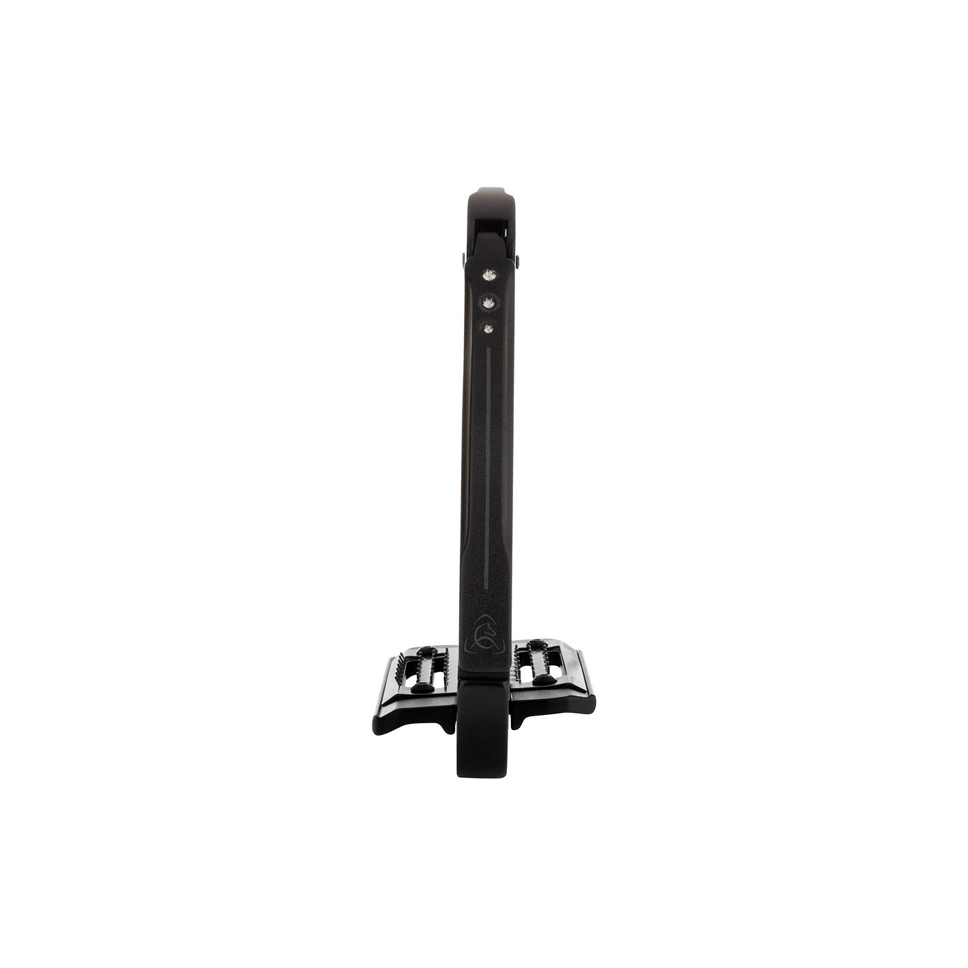 De beugels zijn uitgerust met een scharnierend veiligheidsmechanisme met een kleine voetstop. Het gewicht van de ruiter zorgt ervoor dat de beugel opent bij een val. Op deze manier blijft de voet niet in de beugel hangen. De voetstop zorgt ervoor dat de beugel alleen opengaat, als dat echt noodzakelijk is. Zodra de voet de beugel verlaten heeft, sluit de beugel zich gemakkelijk met een klik. Het scharnierend onderdeel bevindt zich bovenaan om te voorkomen dat zand of vuil de werking belemmert.