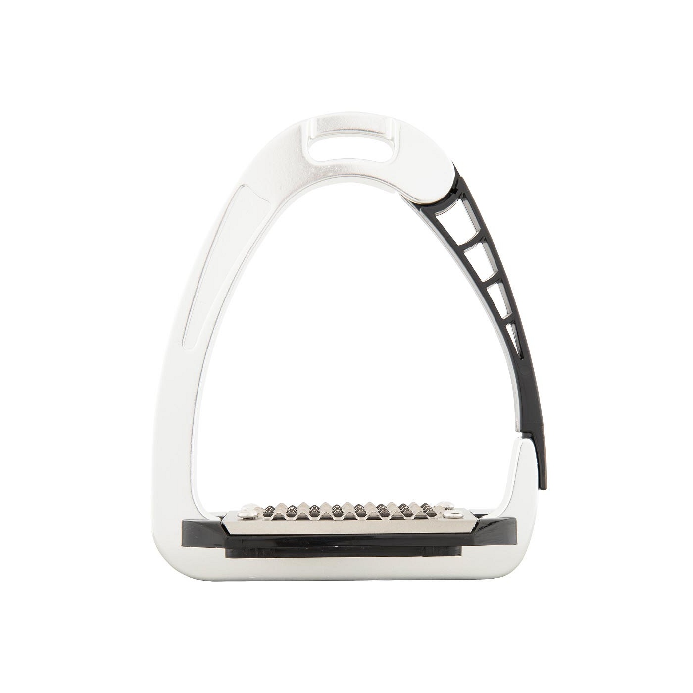 De brede roestvrijstalen antislip beugelzool met fijn profiel geeft de ruiter optimale grip en de afgeschuinde stijgbeugelriemophanging zorgt voor een goede beugelpositie, waardoor de voet in de juiste positie gehouden wordt. Dit geeft de ruiter meer stabiliteit en verbetert de beenligging. Per paar.
