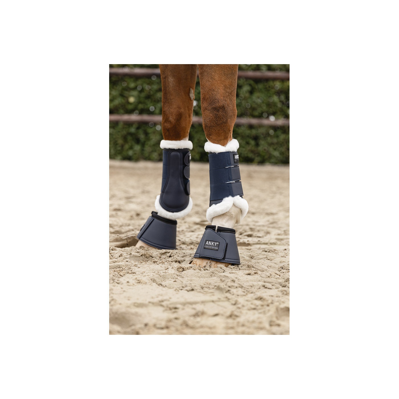 Deze ANKY® springschoenen zijn gevoerd met neopreen voor een optimale schokdemping. Daarnaast zorgt de vorm van de stevige klittenbandsluitingen ervoor dat er geen wrijving ontstaat tussen het klittenband en het paardenbeen. Springschoenen voorkomen beschadigingen aan de hoef en de hoefballen door het aantikken van de achterhoeven.