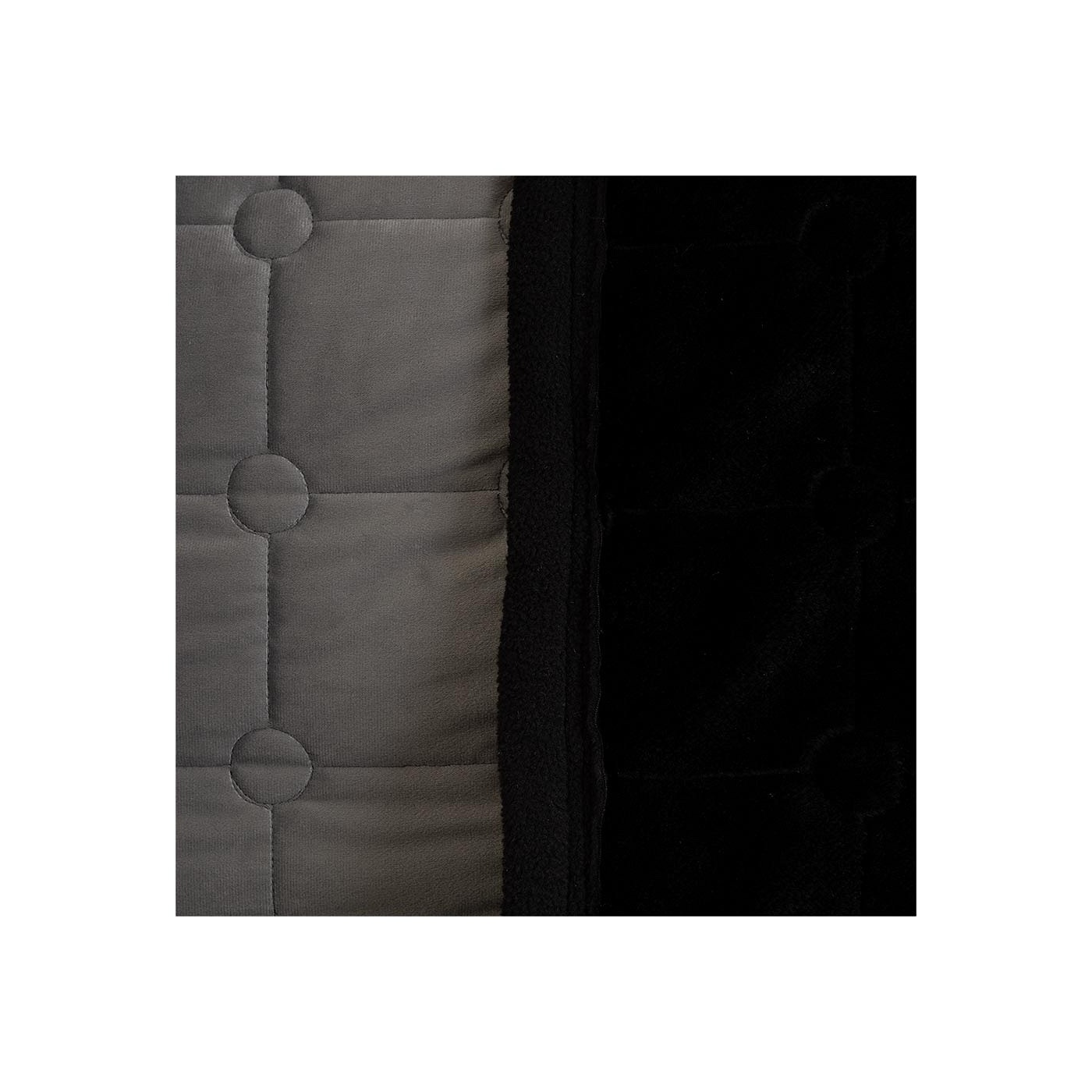 De deken heeft een elegante buitenzijde van fluweel (velvet) met een vierkante stepping met cirkels op de hoekpunten. De deken is sierlijk afgewerkt met een koordbies en een bies met CLX erop.