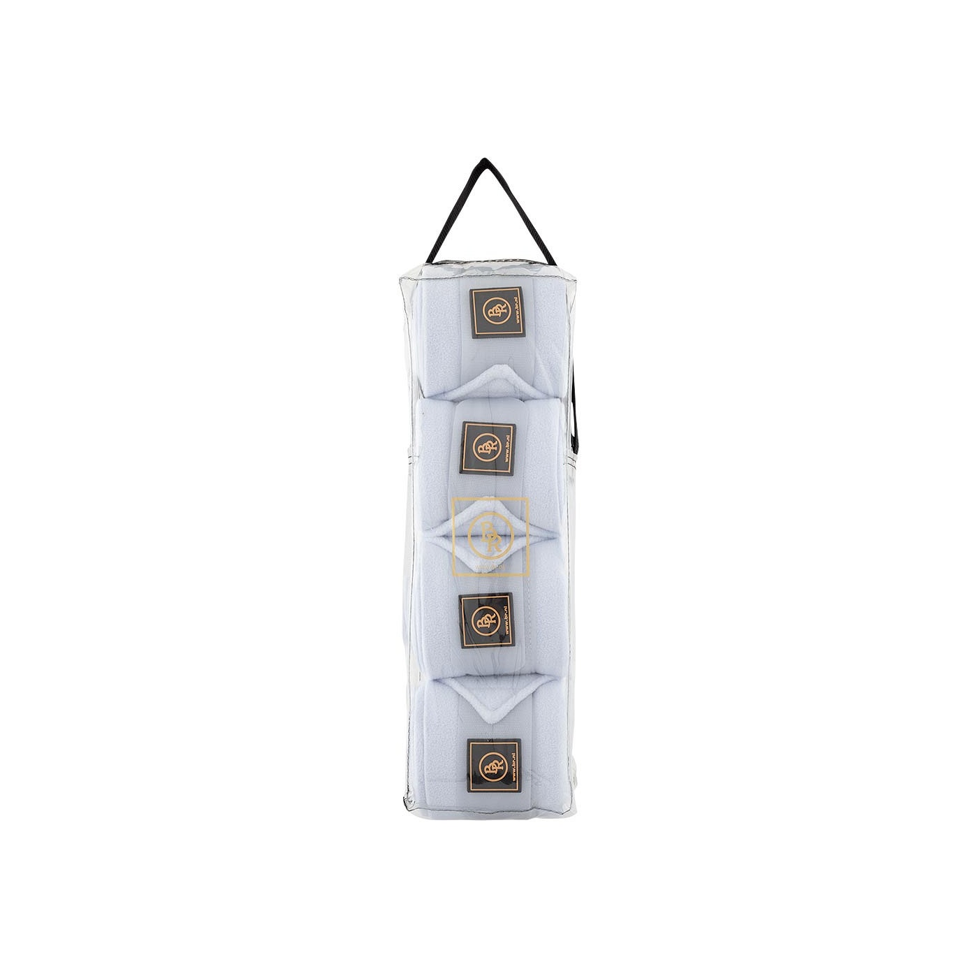 ?380g fleece polobandages met sterke klittenbansluiting. De bandages zijn 3m lang x 10cm breed en zijn per 4 stuks verpakt in een handige draagtas, waarin je de bandages ook netje op kunt bergen.