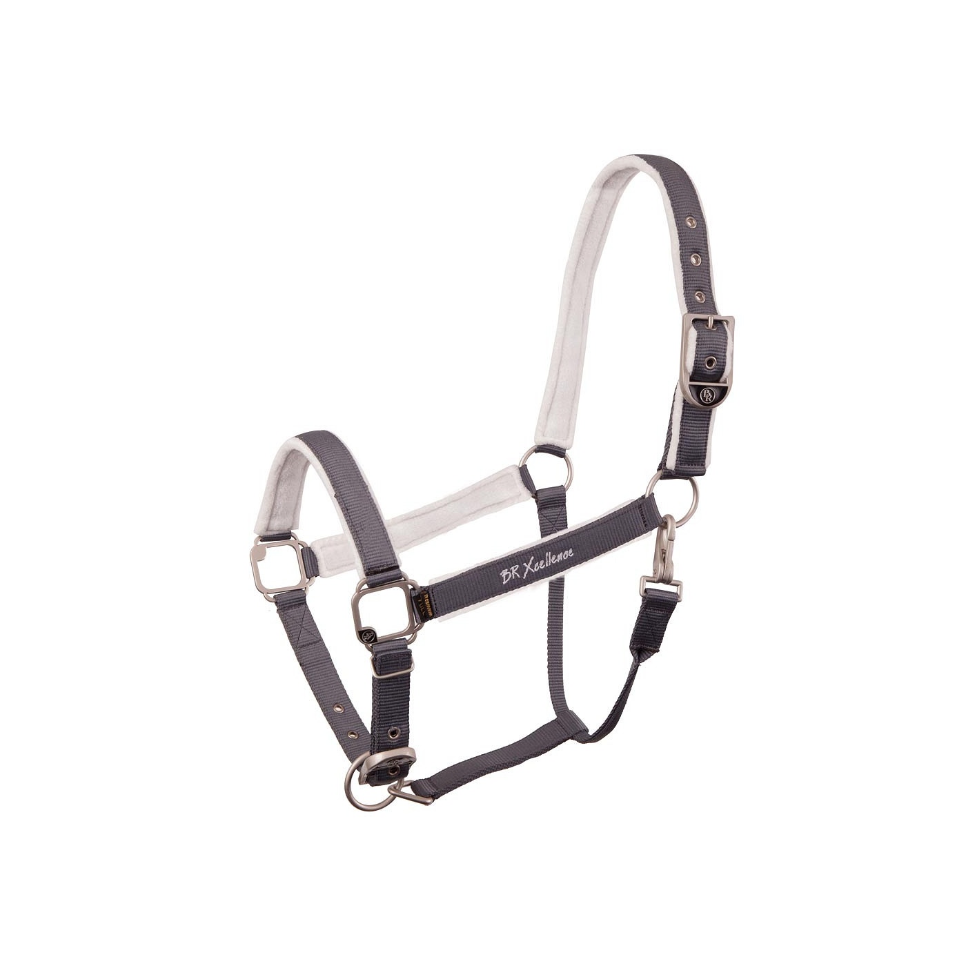 Opties Halster met polypropyleen banden. Het kopstuk, de bakstukken en de neusriem zijn gevoerd met fleece. Dit is extra zacht voor het gevoelige paardenhoofd. Het kopstuk en de neusriem zijn verstelbaar met een gespsluiting. De keelriem is voorzien van een karabijnhaak. De bakstukken zijn verfraaid met borduursel. Het halster is uitgerust met matte, zilverkleurige fournituren. Bijpassende BR lijn Xcellence, artikel 442132 (musketonhaak) en 441002 (paniekhaak). Daarnaast kan het halster gecombineerd worden met diverse andere artikelen in dezelfde kleur uit de Xcellence lijn.