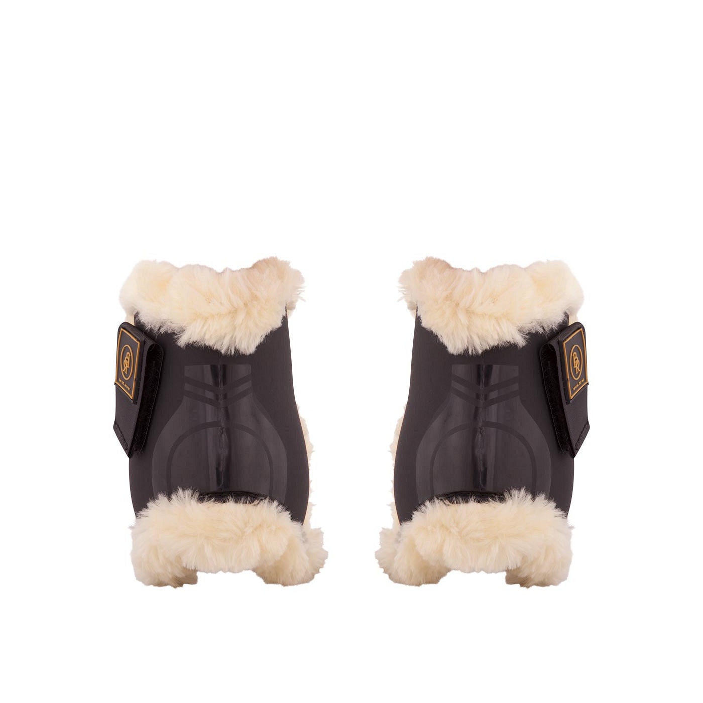 ?De kogelbeschermers zijn vervaardigd van stevig, anatomisch gevormd polyurethaan en hebben een stijlvolle, glimmende print. Ze zijn gevoerd met zacht, synthetische schapenvacht en sluiten met een sterke klittenbandsluiting met elastiek en overslag. Omdat de beschermers rondom de kogel zitten zullen ze niet schuiven zodat ze hun functie niet kunnen verliezen. Deze kogelbeschermers matchen perfect met de BR peesbeschermers Snuggle (artikel 292133).