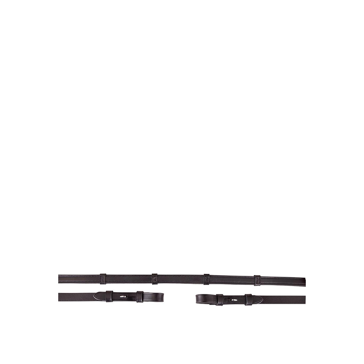 Lederen antislip teugel met rubberen binnenzijde, lederen handstops en blinde sluitingen, 16 mm. Zonder teugelstops.