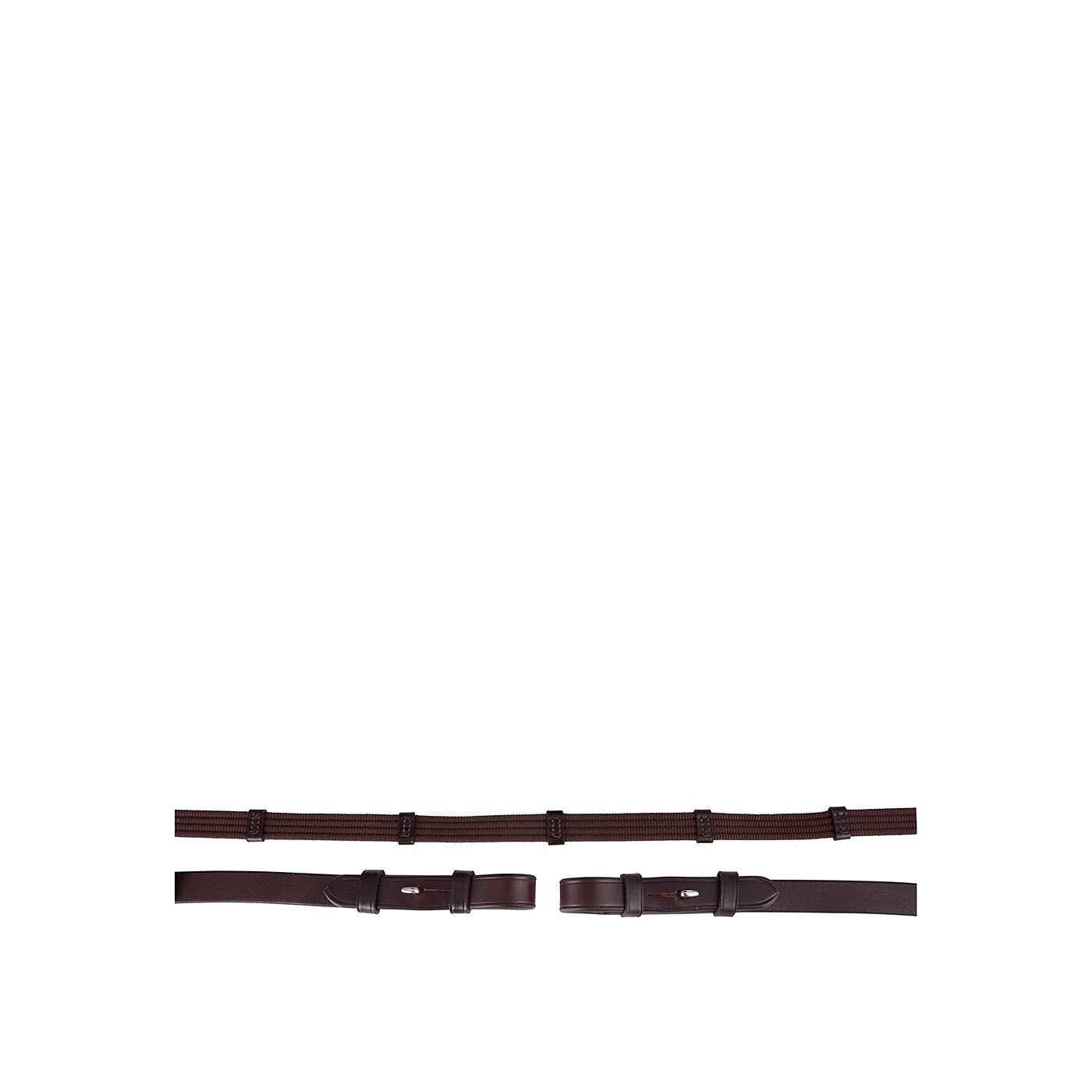 Linnen teugel met lederen hand- en teugelstops, blinde sluitingen en ronde gespen, 19 mm.