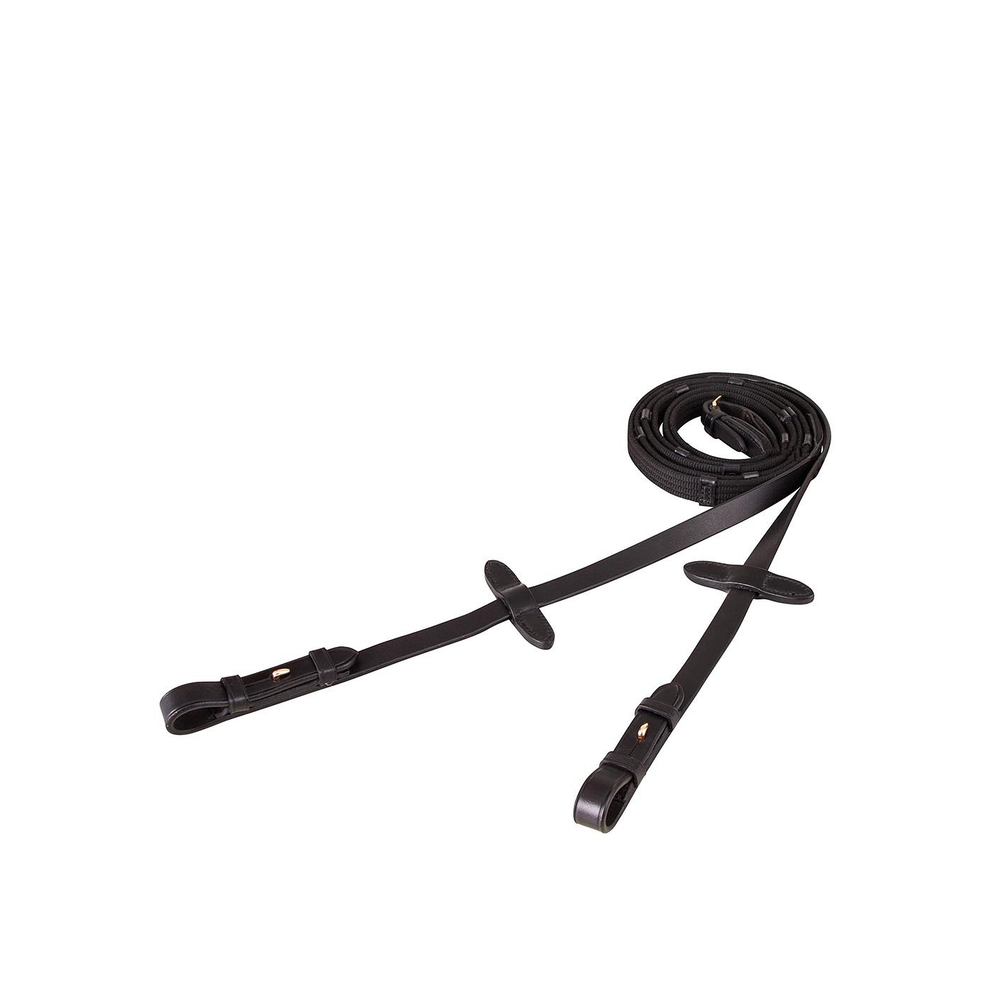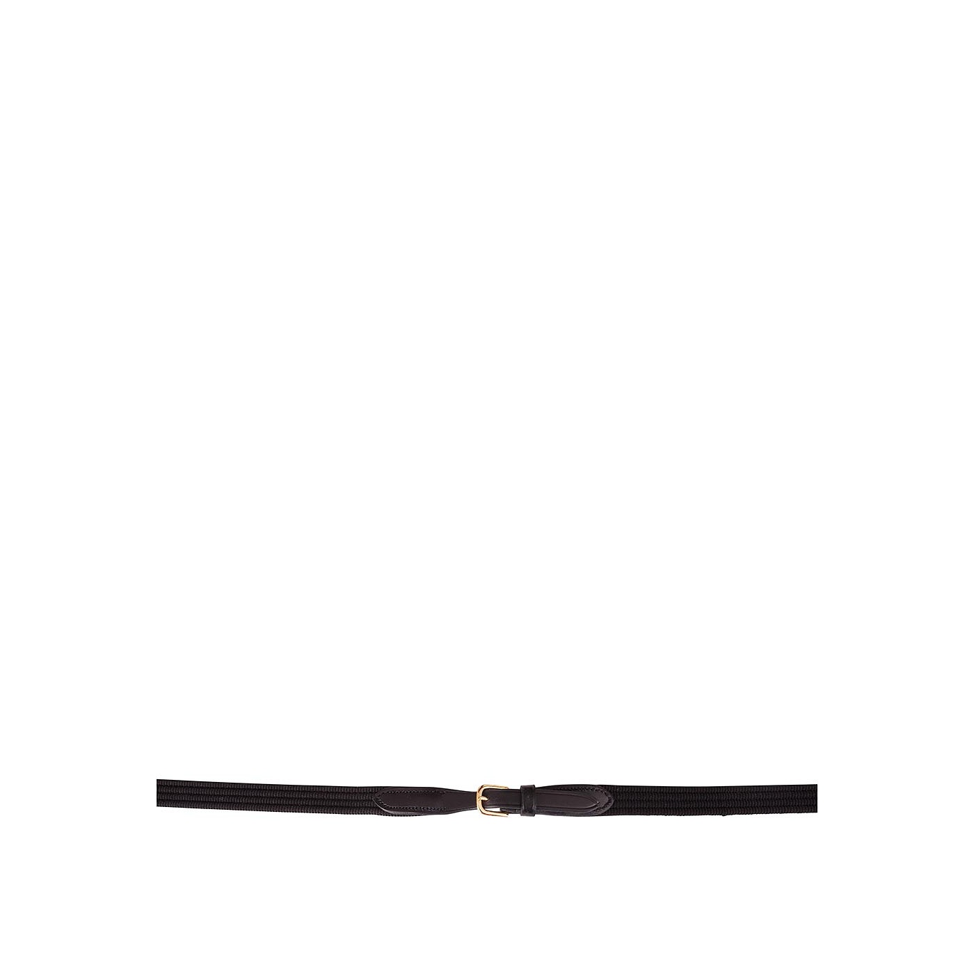 Linnen teugel met lederen hand- en teugelstops, blinde sluitingen en ronde gespen, 19 mm.