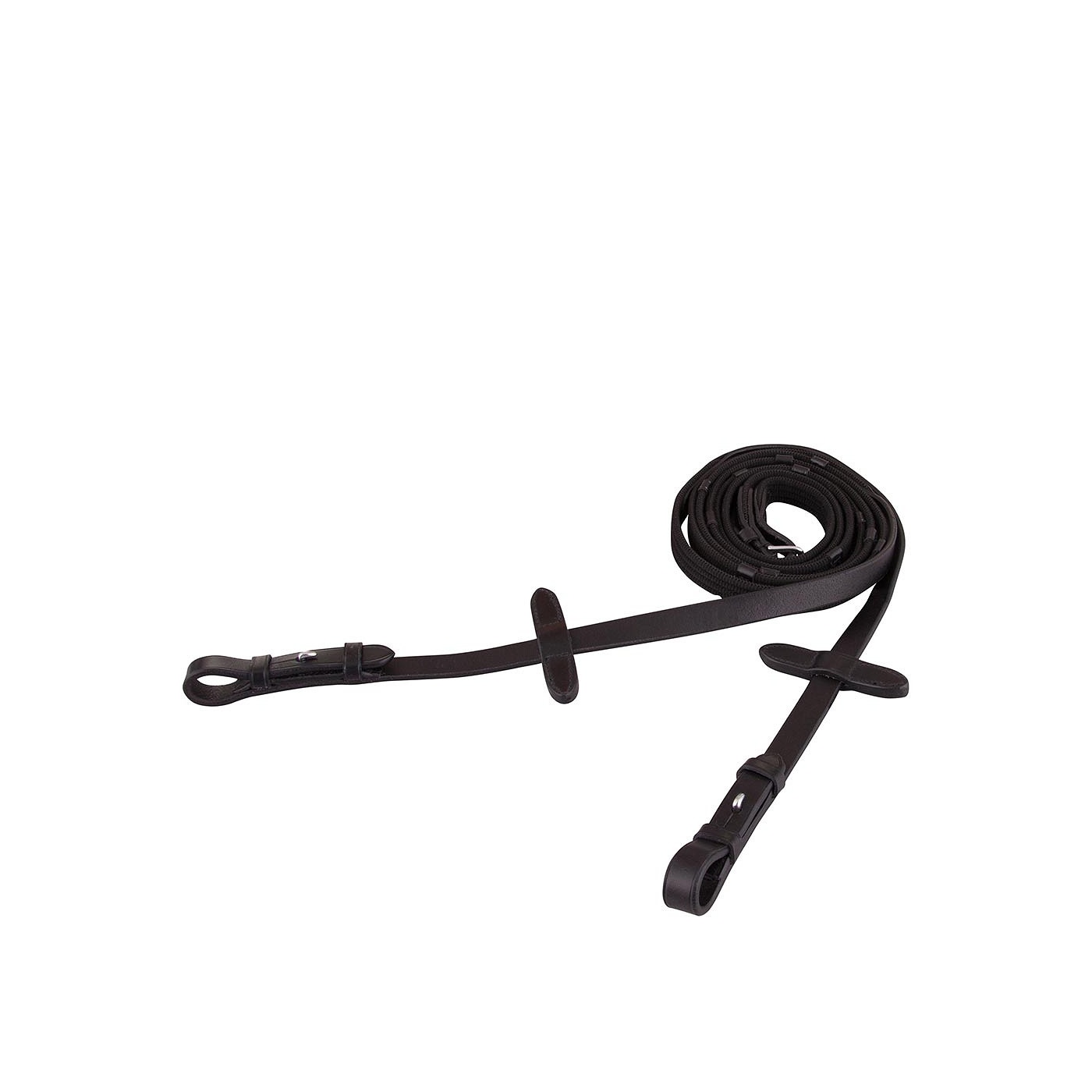 Linnen teugel met lederen hand- en teugelstops, blinde sluitingen en ronde gespen, 19 mm.