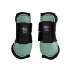 Deze peesbeschermer is speciaal ontwikkeld voor de kleinste paardenrassen en pony’s. De harde buitenschaal beschermt de pezen tegen klappen. De voering van neopreen (6mm) absorbeert de schokken en voelt aangenaam aan op de paardenhuid. De peesbeschermer sluit met stevige, elastische klittenbandsluitingen en door het dubbellaagse klittenband blijft de beschermer goed dichtzitten. Het kleurrijke artwork op het klittenband geeft de peesbeschermer een extra speels effect.