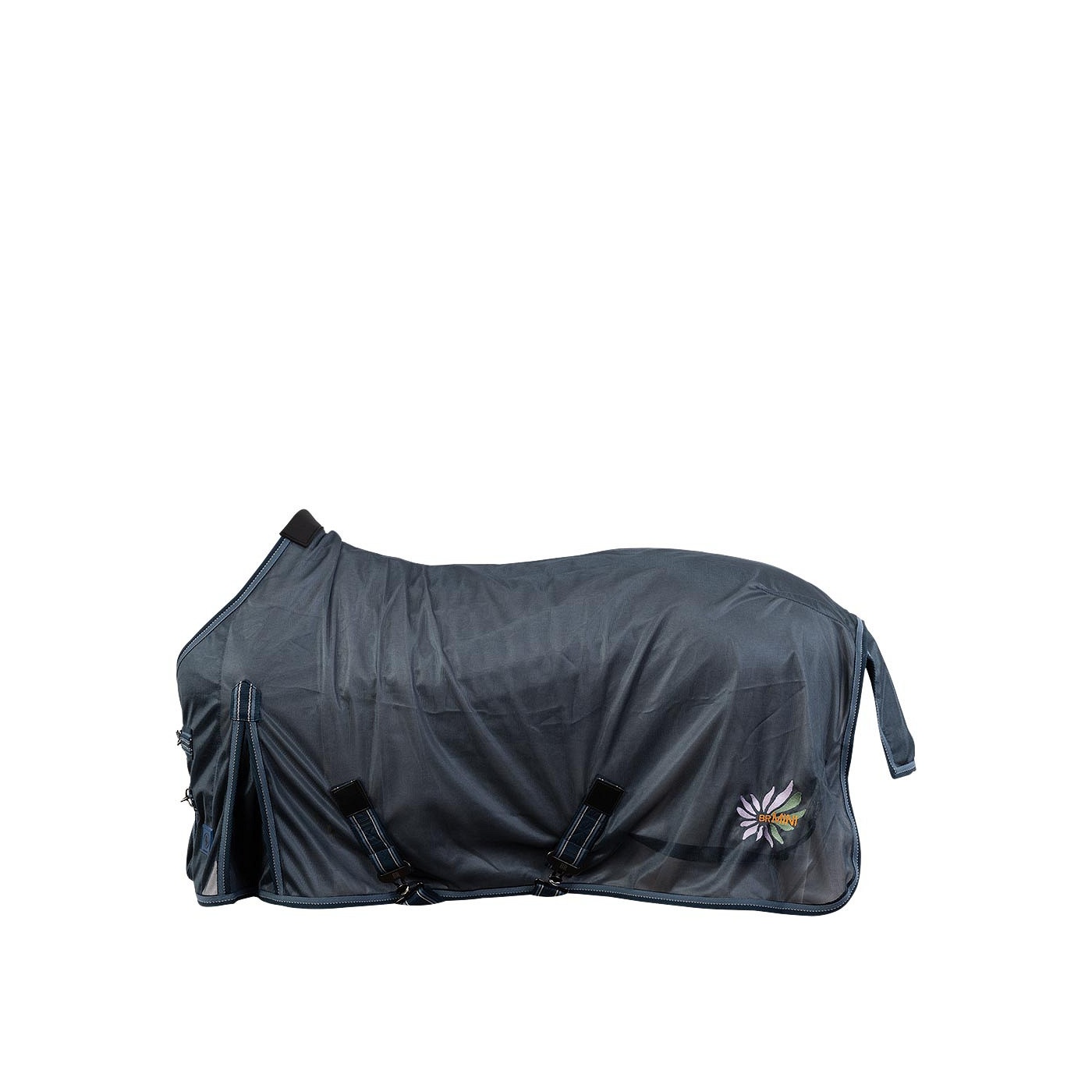 De Mini-Horse vliegendeken is kleurrijk en speciaal ontworpen voor de kleinste paardenrassen en pony’s. Met deze vliegendeken van fijnmazig mesh voorkom je dat je paardje of pony wordt lastig gevallen door vliegen en muggen. De schoftbeschermer biedt extra bescherming en zachtheid zonder dat het te veel warmte afgeeft. De dubbele voorsluiting is verstelbaar en op een handige manier te bevestigen met de musketonhaken.