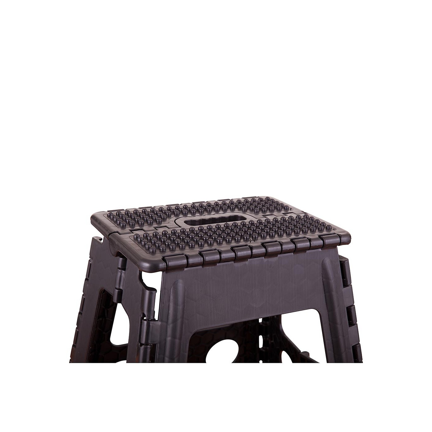 Handig opstapkrukje van polypropyleen met antislip bovenzijde. Omdat het krukje opvouwbaar is, kan het eenvoudig opgeborgen of meegenomen worden. Ideaal om mee te nemen naar wedstrijden. Het krukje is makkelijk te dragen door het geïntegreerde handvat. BR logo aan beide zijden. Maximale belasting 100 kg. Afmetingen: 29 x 22 x 39 cm (l x b x h).