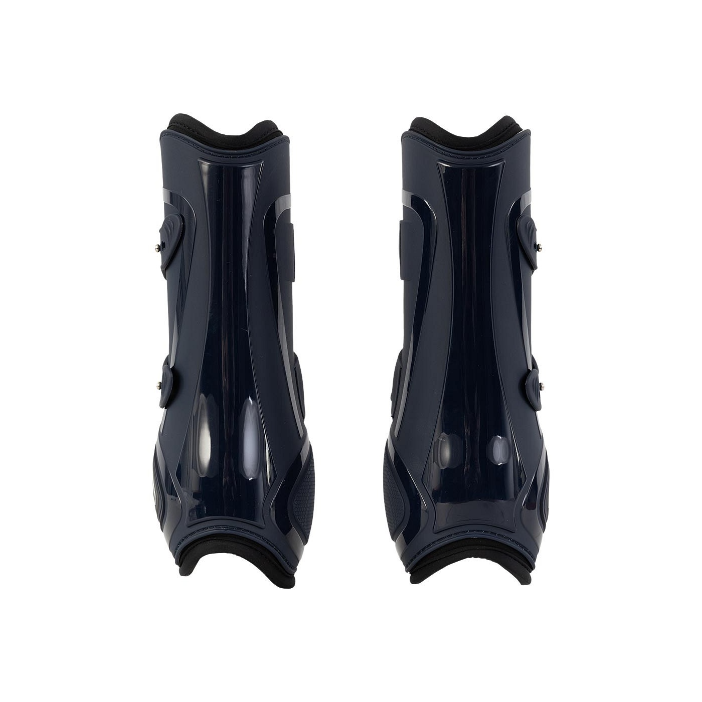 De anatomisch gevormde polyurethaan buitenzijde geeft optimale bescherming aan het paardenbeen. De binnenzijde is gevoerd met zacht, schokabsorberend neopreen. De rubberen snelsluitingen met elastische band kun je gemakkelijk vastzetten en zijn op drie posities verstelbaar.