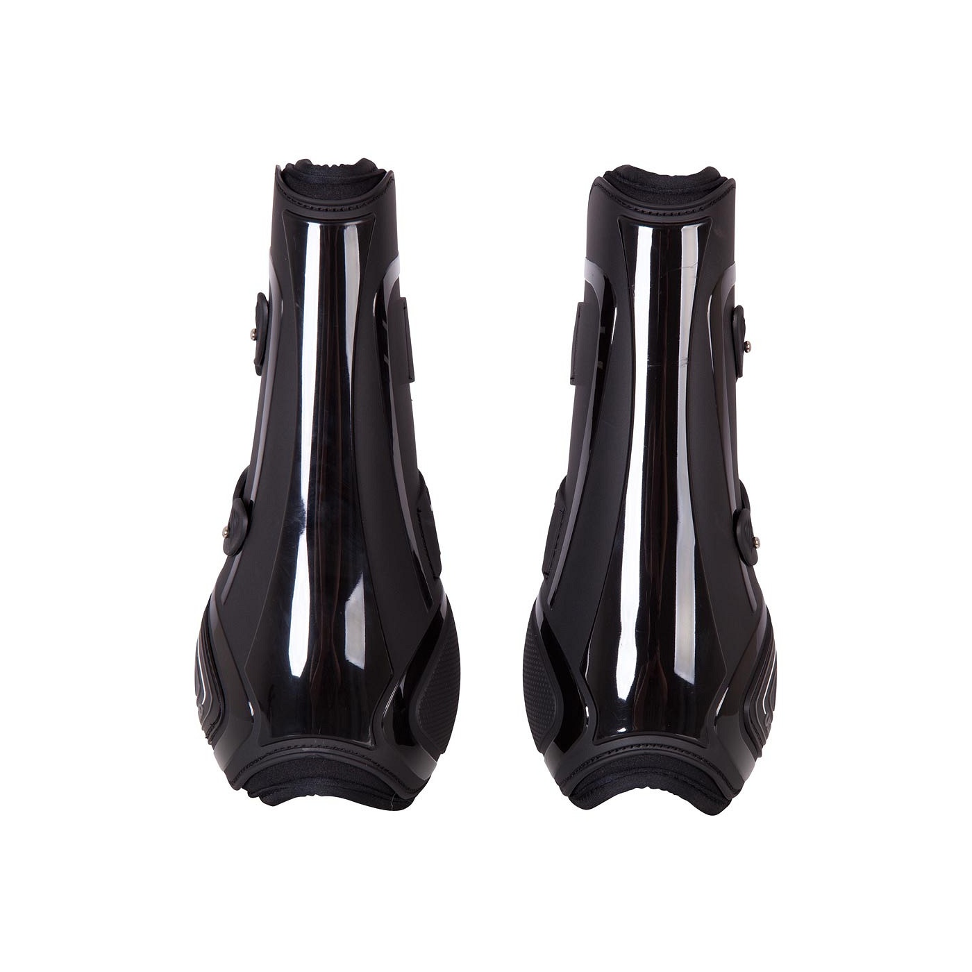 De anatomisch gevormde polyurethaan buitenzijde geeft optimale bescherming aan het paardenbeen. De binnenzijde is gevoerd met zacht, schokabsorberend neopreen. De rubberen snelsluitingen met elastische band kun je gemakkelijk vastzetten en zijn op drie posities verstelbaar.