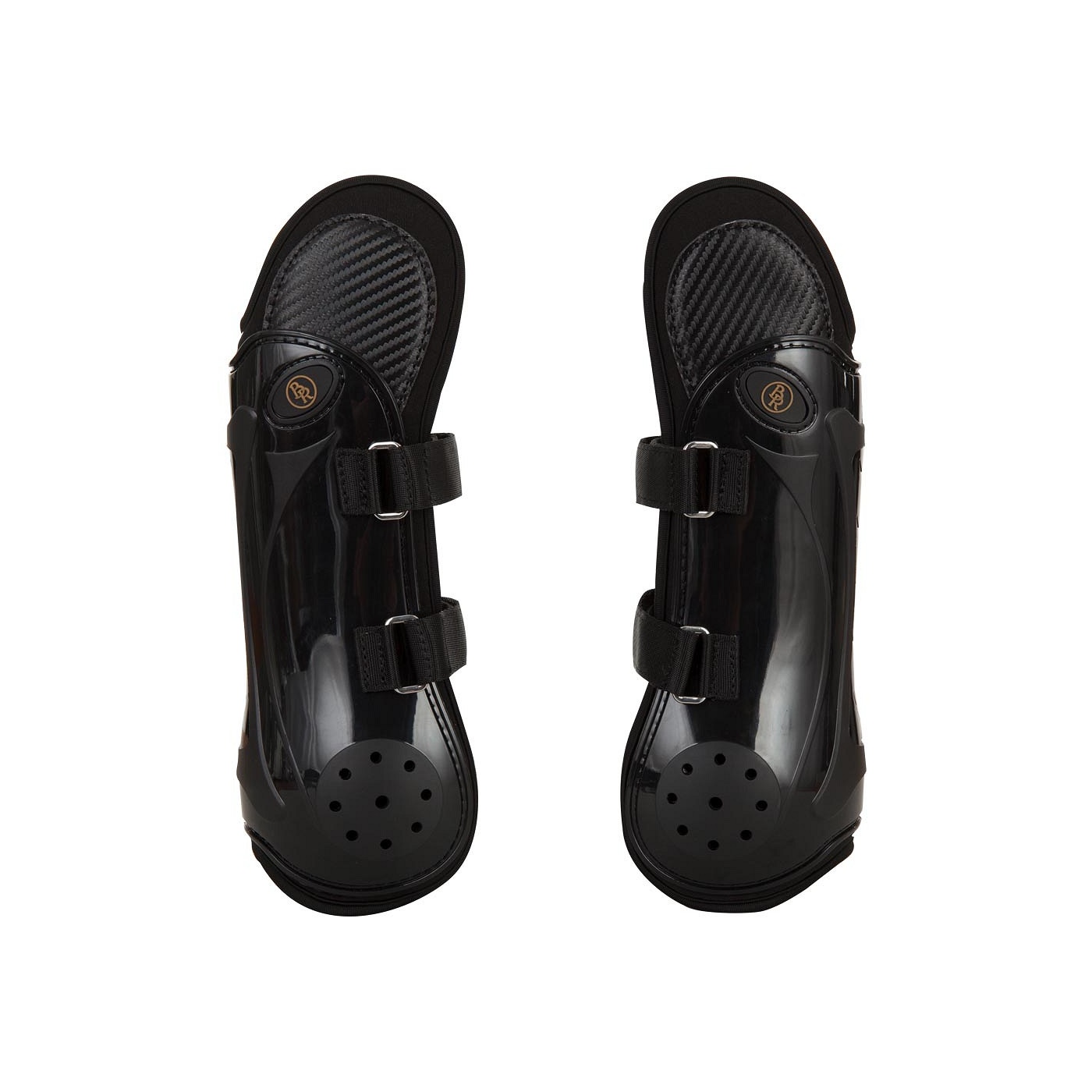 De beschermers hebben een harde buitenkant voor optimale bescherming. De zij- en achterkant zijn voorzien van ventilatie openingen. Daarnaast is de beschermer gevoerd met ademend neopreen. De beschermer heeft klittenbandsluitingen zonder elastiek die zijn toegestaan op alle (FEI) wedstrijden. Ook voor jonge paarden zijn deze beschermers zeer geschikt.