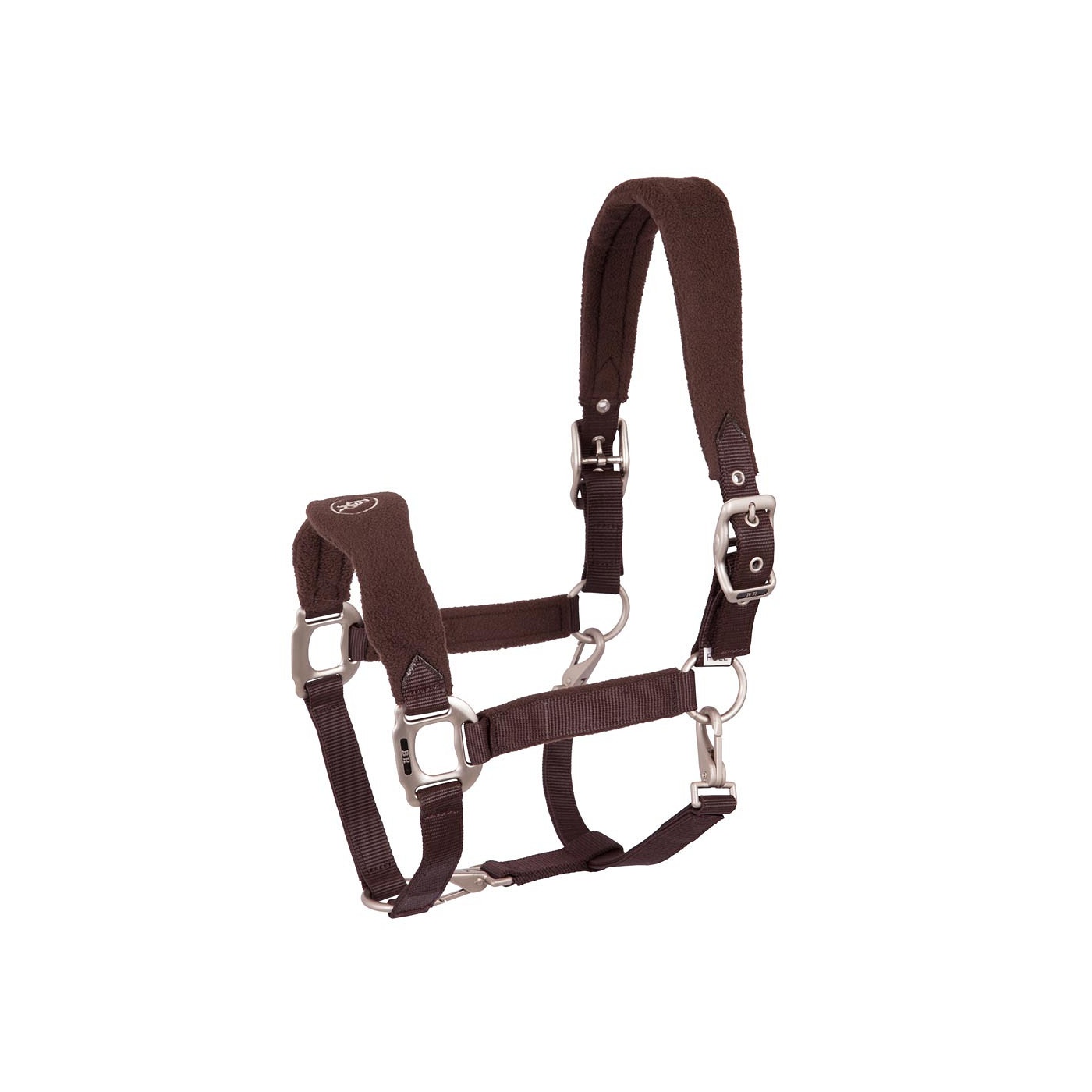 Nylon halster met een fleece voering om het kopstuk en de neusband. Het halster is aan 2 zijden verstelbaar en heeft 3 Quick Release clips aan de onderzijde zodat het onderste gedeelte van het halster eenvoudig losgemaakt kan worden. Zo kun je overal goed bij tijdens het poetsen. Het halster heeft een BR borduursel en is voorzien van mat zilveren fournituren.