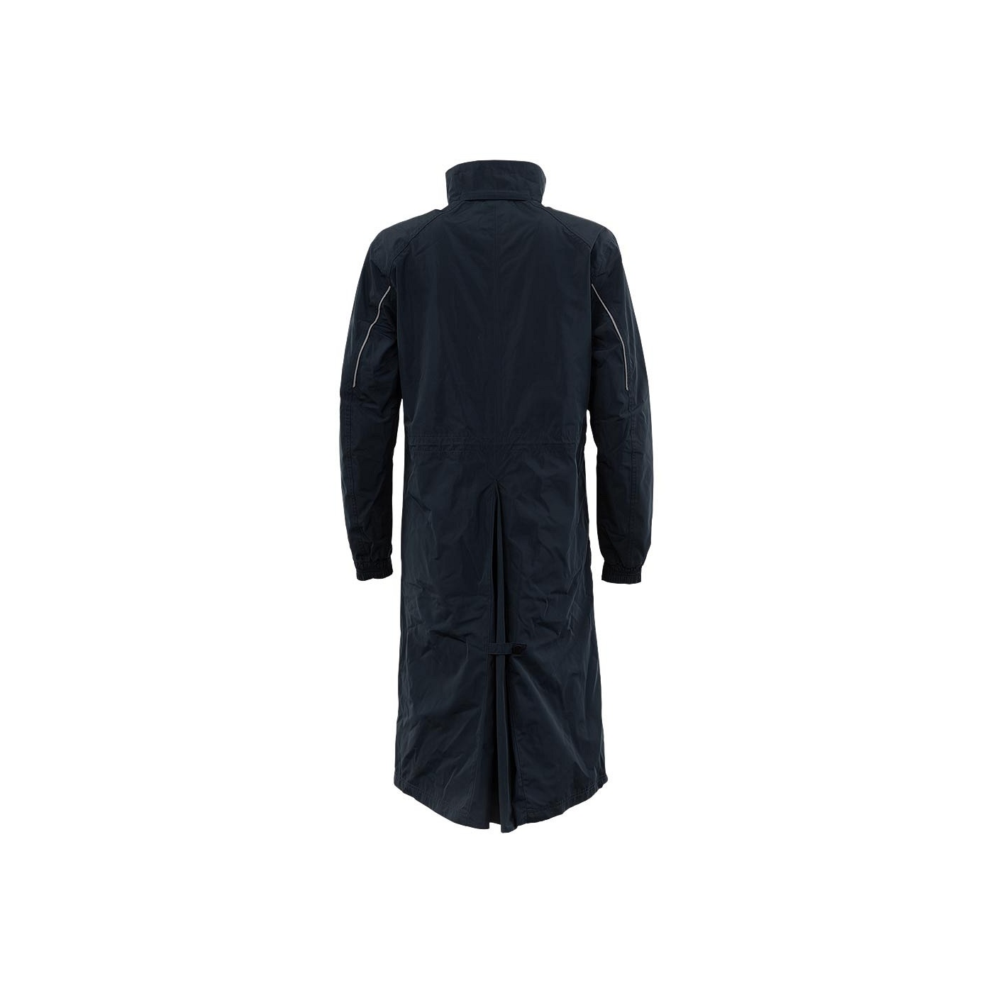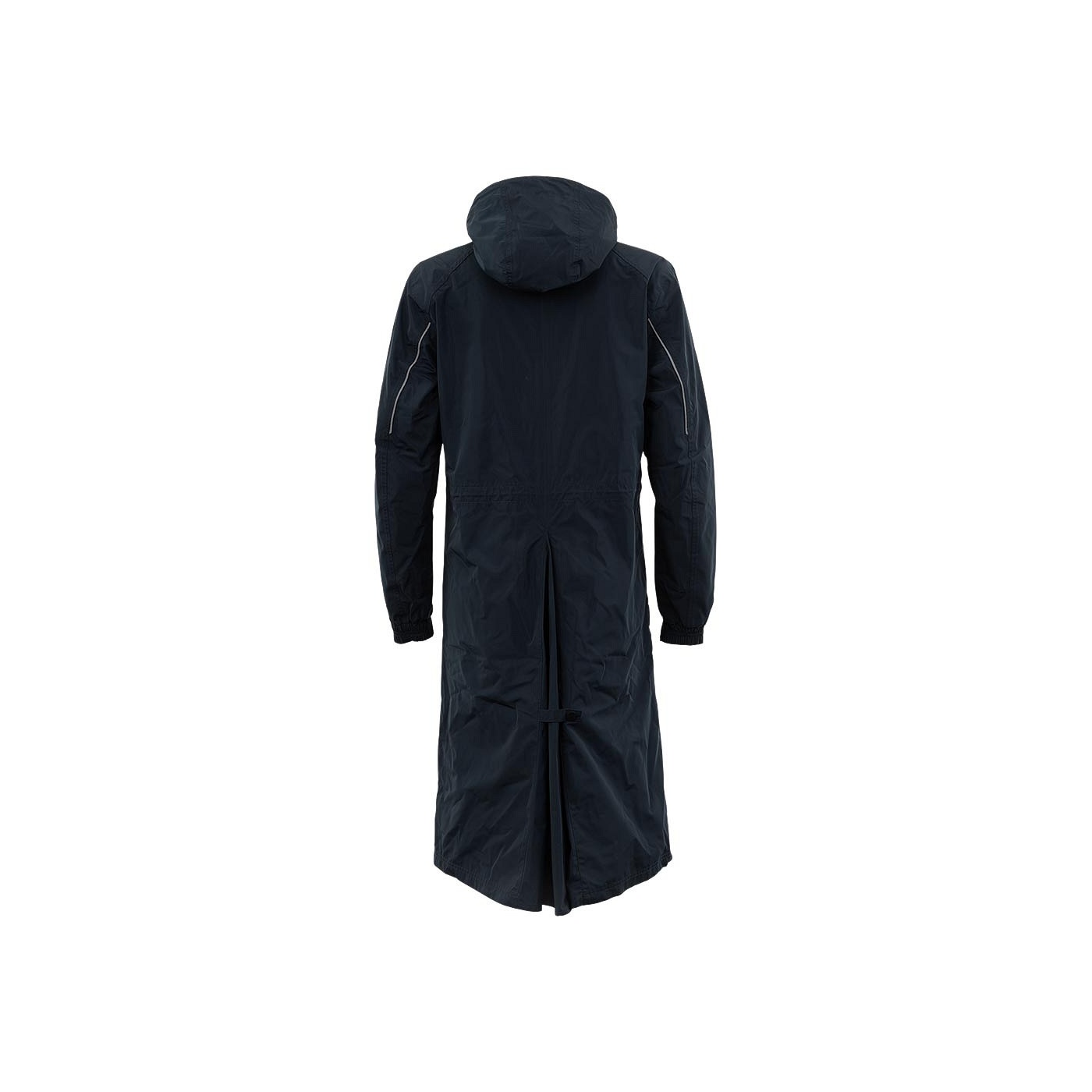 De Essentials regenjas heeft een tweewegrits zodat je de jas tijdens het rijden vanaf beneden open kunt ritsen. Dankzij de extra flappen die je om je benen kunt vastzetten met klittenband, hoef je niet bang te zijn dat je benen nat worden. Door de split aan de achterkant open te maken, komt er extra stof vrij om het zadel te bedekken.