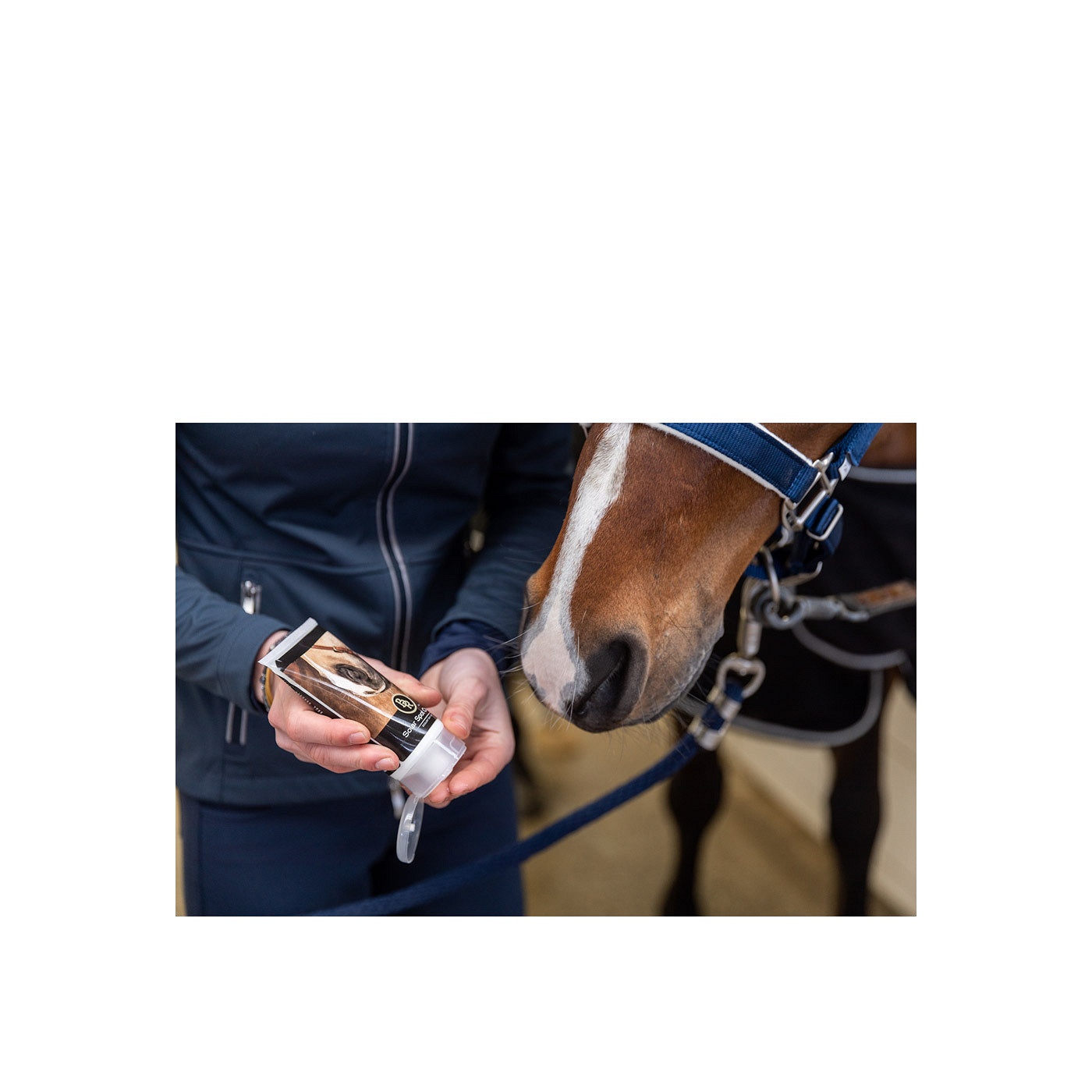 BR Solar Spot Cream beschermt en verzorgt de ongepigmenteerde gedeelten van de huid voornamelijk op het hoofd, neus en rond de ogen van paarden. De waterbestendige crème ondersteunt het herstellend vermogen van de huid en verzorgt ook de gezonde cellen en weefsels. Daarnaast is de crème perfect te gebruiken om blaarvorming van de rode en gevoelige huid tegen te gaan.