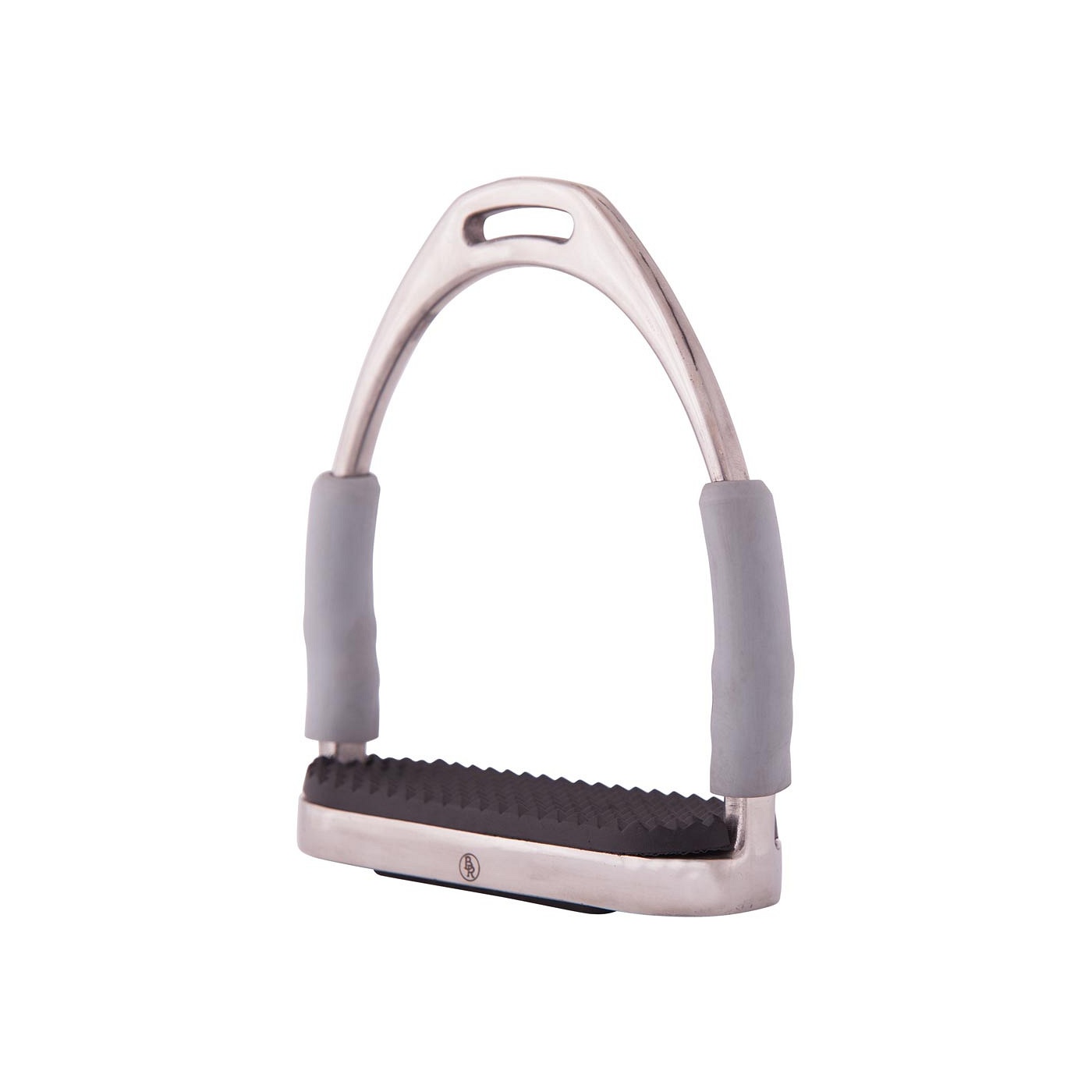 Ergonomische stijgbeugel. Door de flexibele zijdelen ontlast de beugel de gewrichten en pezen. Biedt optimaal comfort en veiligheid. Roestvrij staal met zwarte zooltjes.