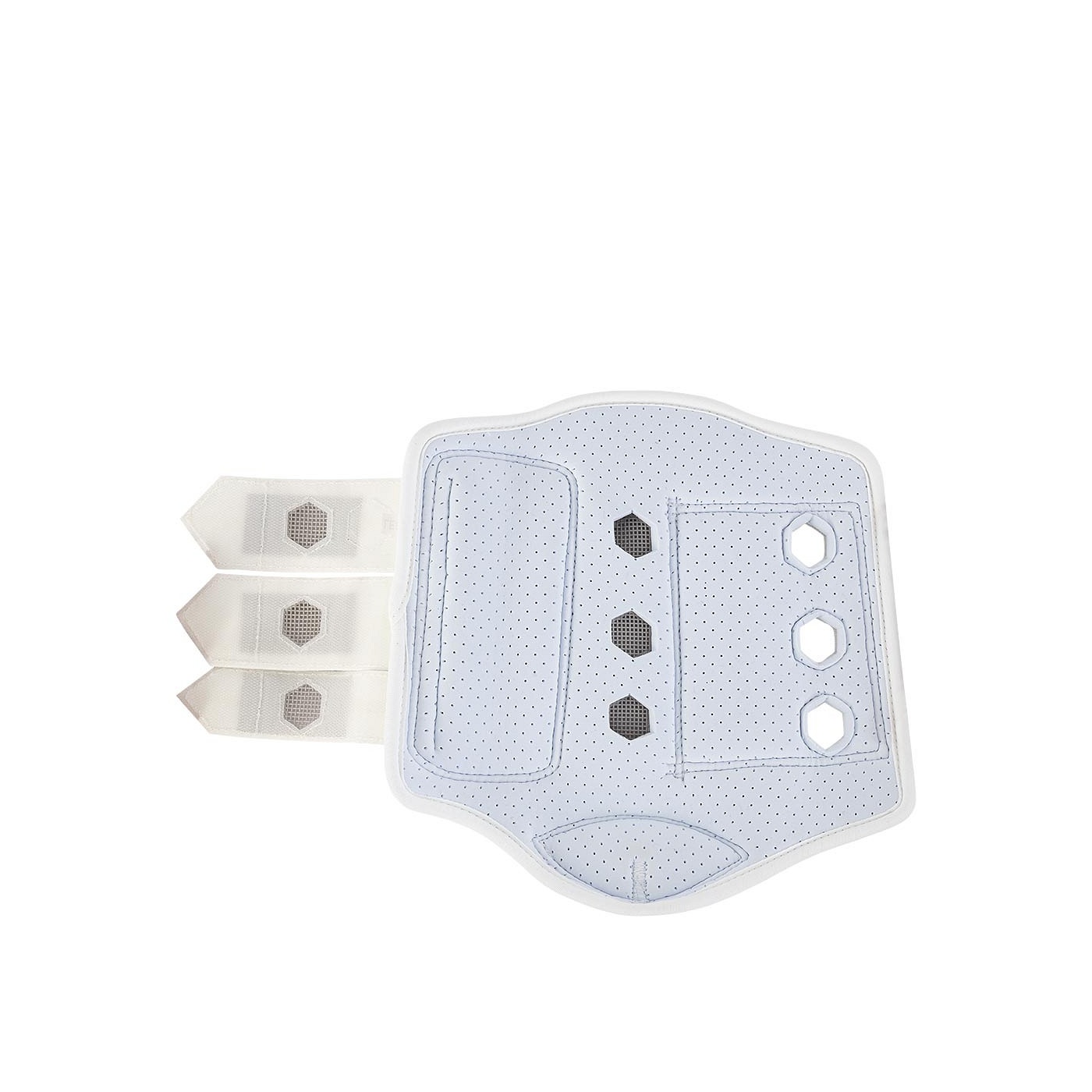 De beschermer is voorzien van verharde stukken en een stevige laag van PU op de plekken waar het paardenbeen extra bescherming nodig heeft. De binnenvoering is schokabsorberend voor optimale bescherming. Het stevige, dubbele klittenbandsysteem zorgt voor extra stevigheid en voorkomt dat de beschermers afzakken.