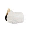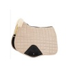 Het zadeldek heeft een luxe uitstraling dankzij het suèdine oppervlak met een vierkante stepping en de bekleding van synthetische schapenvacht. De schapenvacht is nauwelijks van echte schapenvacht te onderscheiden, laat niet los en blijft lang mooi. Het zadeldek is uitgevoerd met verstelbare singellussen met klittenband, met een extra versteviging bij de singellus.