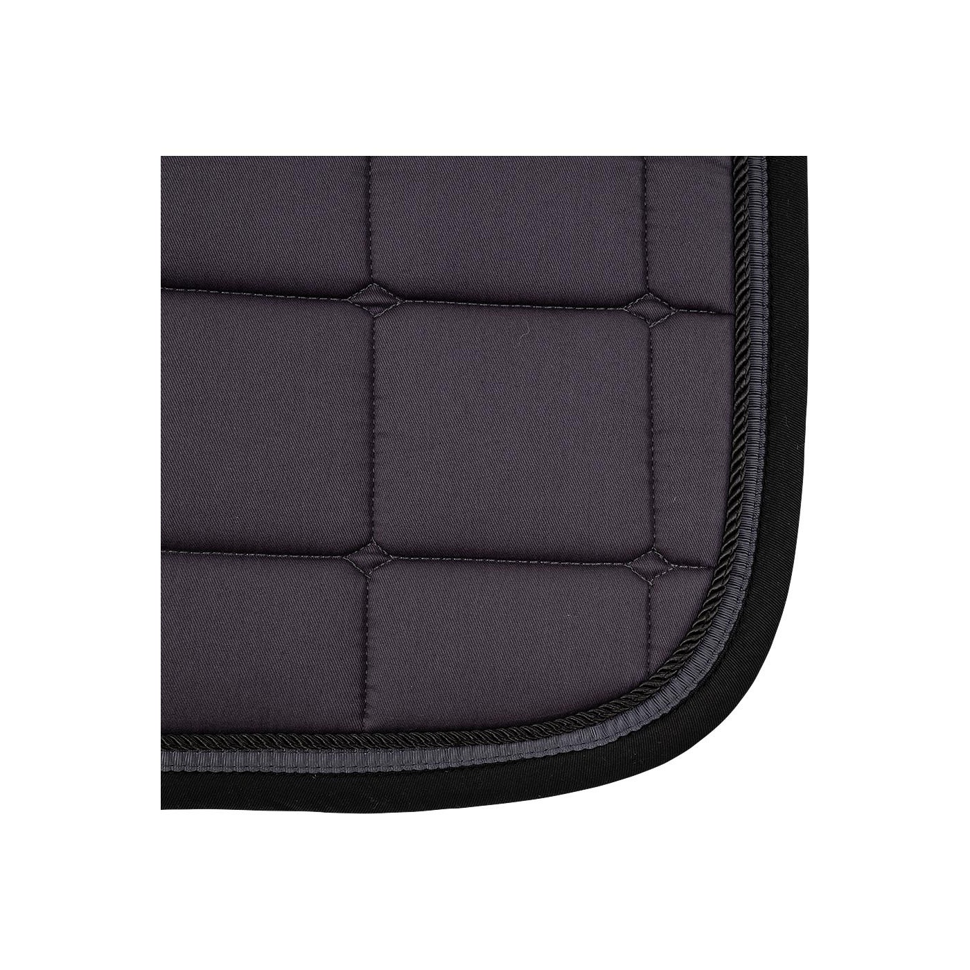 Dit luxe zadeldek van polykatoen twill heeft een schokabsorberende vulling van 700 g vilt en 10 mm foam. Het anatomisch gevormde zadeldek heeft een Cool Plus voering aan de onderzijde met uitstekende vochtregulerende en ademende eigenschappen. Door de anatomisch gevormde rugnaad ontstaat er minder snel druk op de ruggenwervels en schoft. Het zadeldek is afgewerkt met een koordbies en decoratief band en heeft een vierkante stepping. De singellussen zijn voorzien van klittenband. Machinewasbaar op 30°C. Dit zadeldek kan gecombineerd worden met diverse andere artikelen in dezelfde kleur uit de Xcellence lijn.