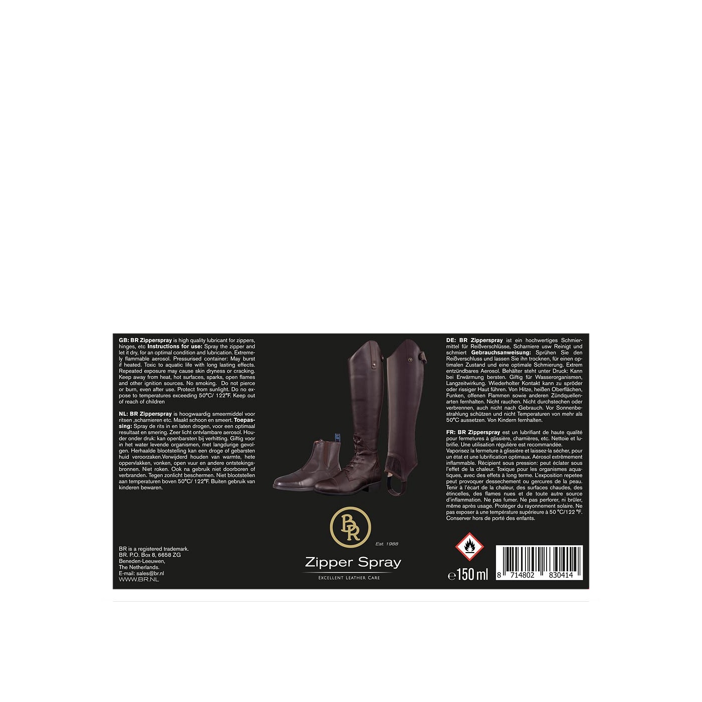 BR ritsspray maakt schoon en smeert ritsen, scharnieren, etc. We raden aan dit hoogwaardige smeermiddel regelmatig te gebruiken.