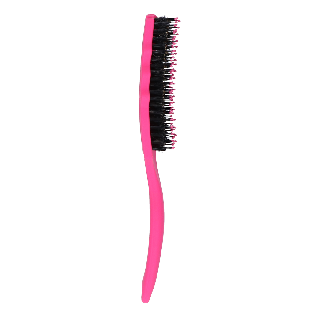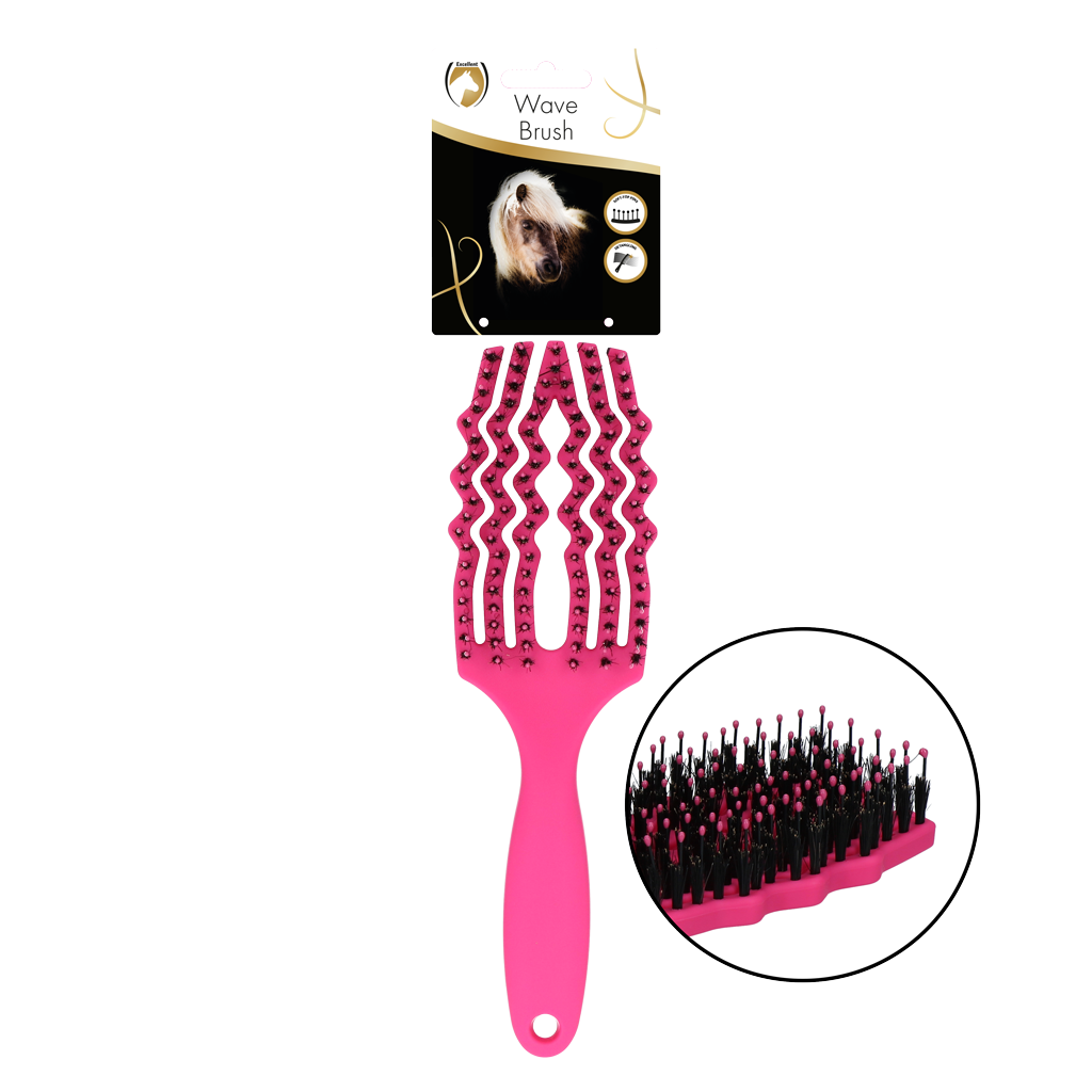 Het is een staart- en manenborstel met flexibele soft-top pinnen en varkenshaar.