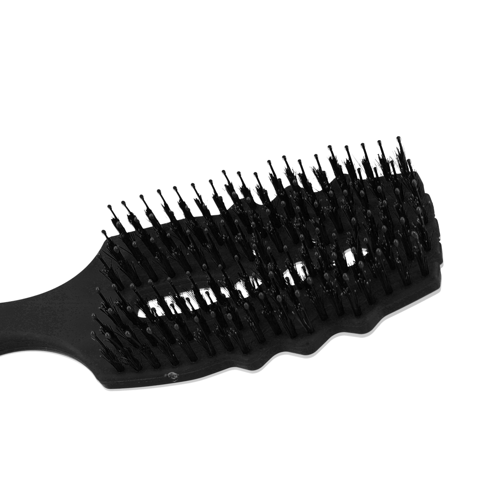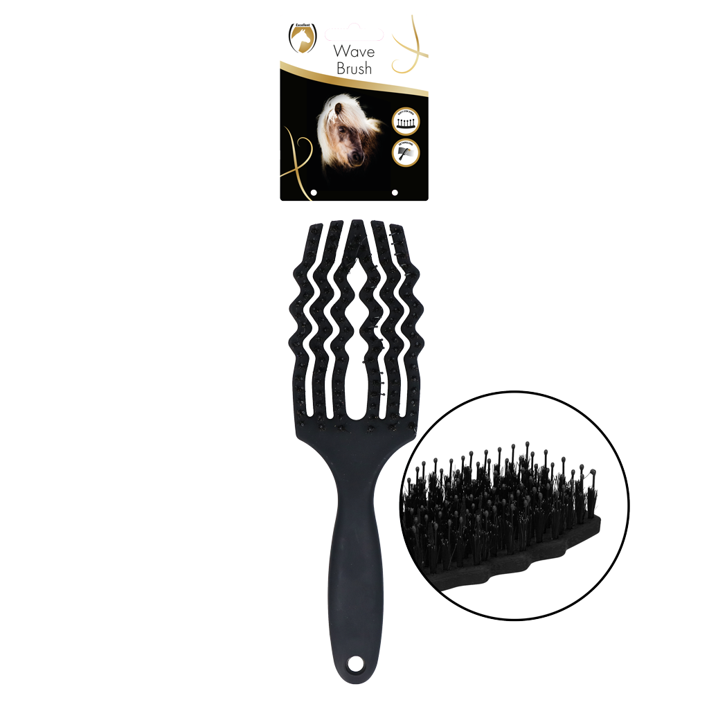 Het is een staart- en manenborstel met flexibele soft-top pinnen en varkenshaar.