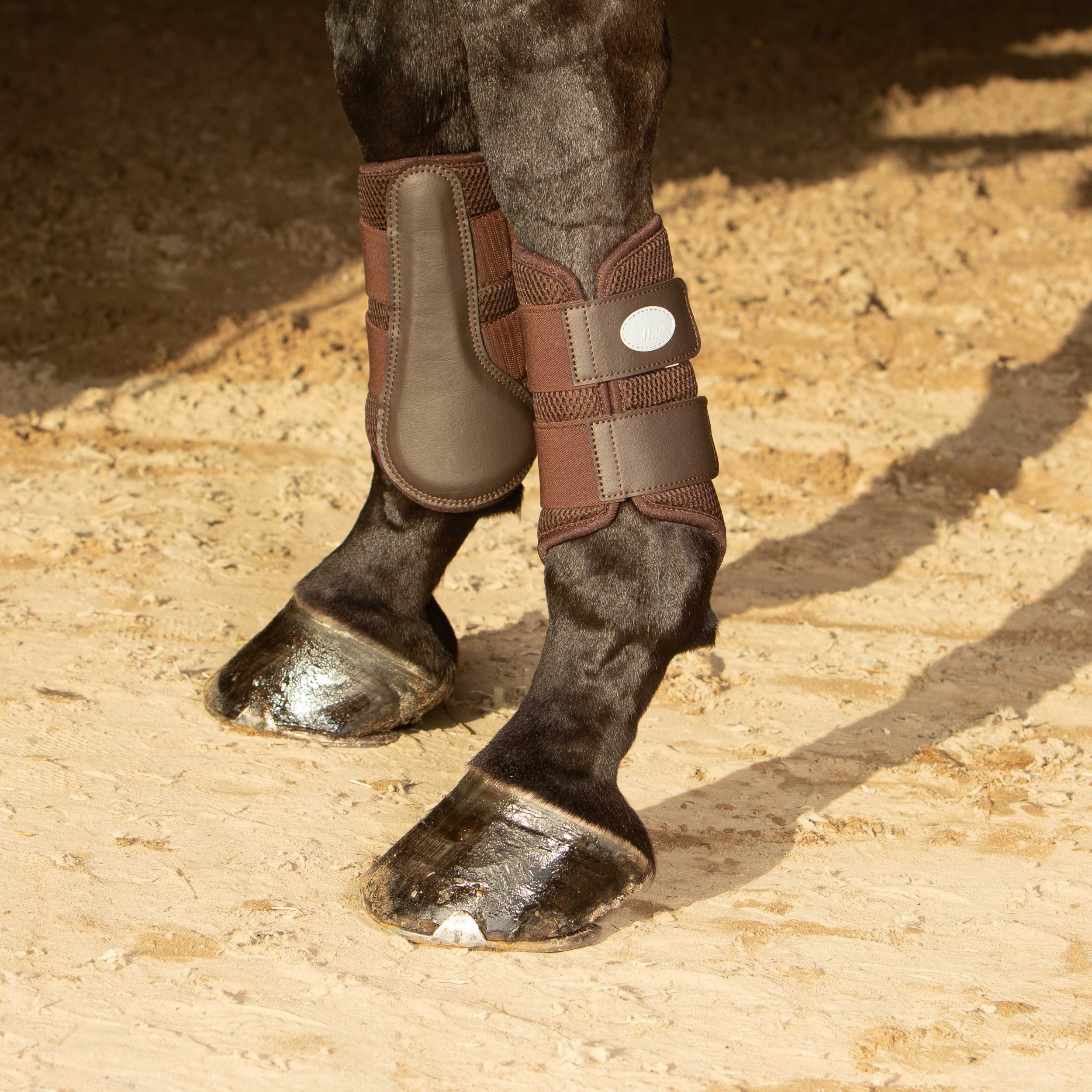 Populaire beenbeschermers met sterke, elastische klittenbandsluiting. De Flextrainer Air is uitgevoerd met een ademende air mesh voering voor extra ventilatie en een goede afvoer van de hitte. Door de optimale pasvorm heeft het paard veel bewegingsvrijheid. De ideale vervanging van een traditionele bandage. De beschermers kunnen in de wasmachine gewassen worden (30 graden).