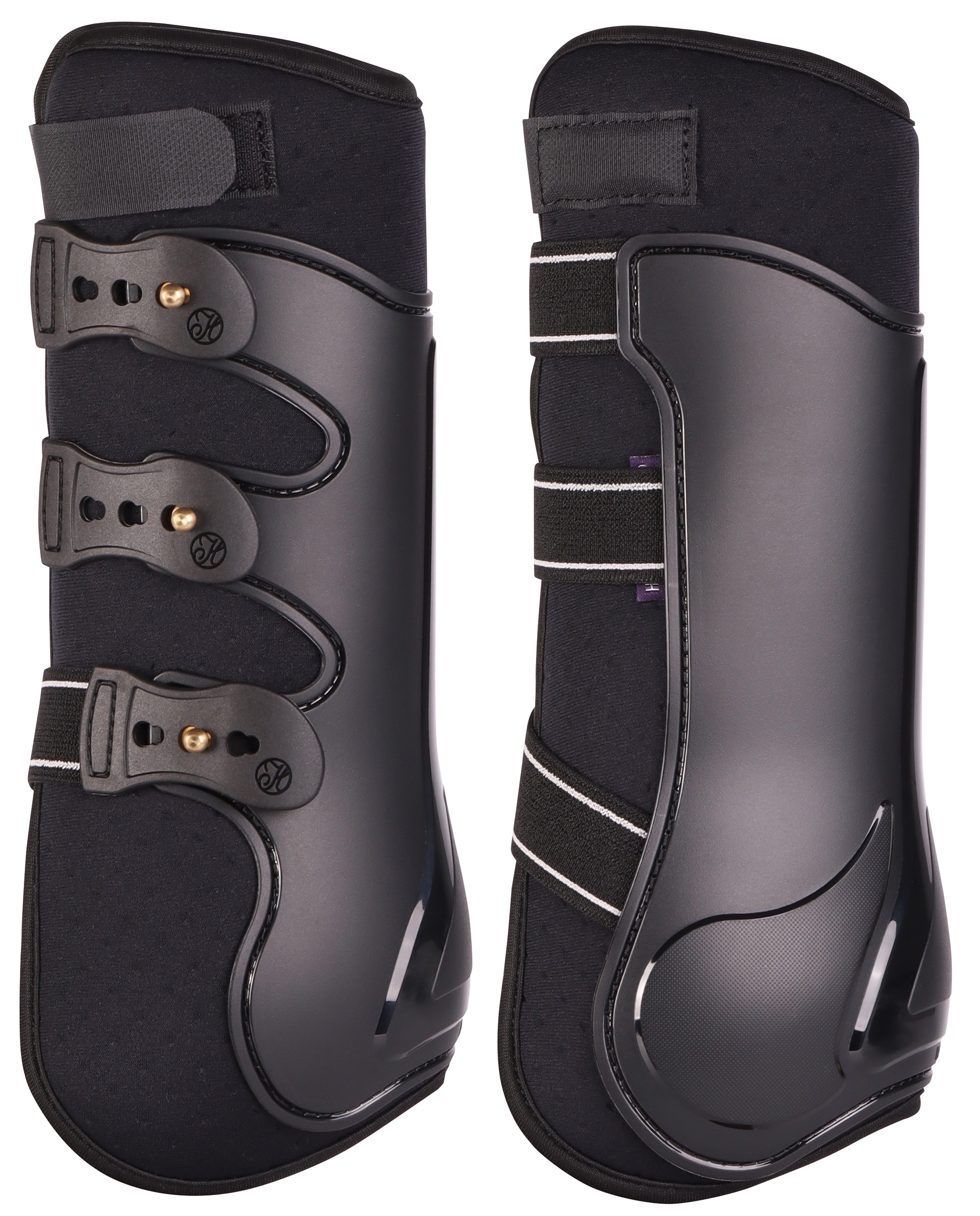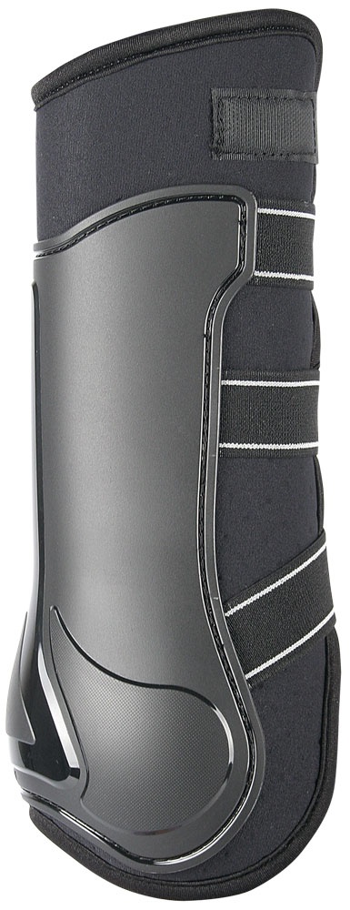 Opties Revolutionaire beenbeschermers met sterke, elastische sluitingen. Geheel uitgevoerd in air-neopreen. Door de optimale pasvorm heeft het paard veel bewegingsvrijheid. De harde schaal beschermt tegen aantikken. Deze beenbeschermer is speciaal ontworpen voor de achterbenen (voorbenen zie artikelnummer 33200103). Lengte cob: 26,5cm (neoprene), 20cm (schaal) Lengte full: 28,5cm (neoprene), 21cm (schaal). Verpakt in luxe mesh bewaarzak.
