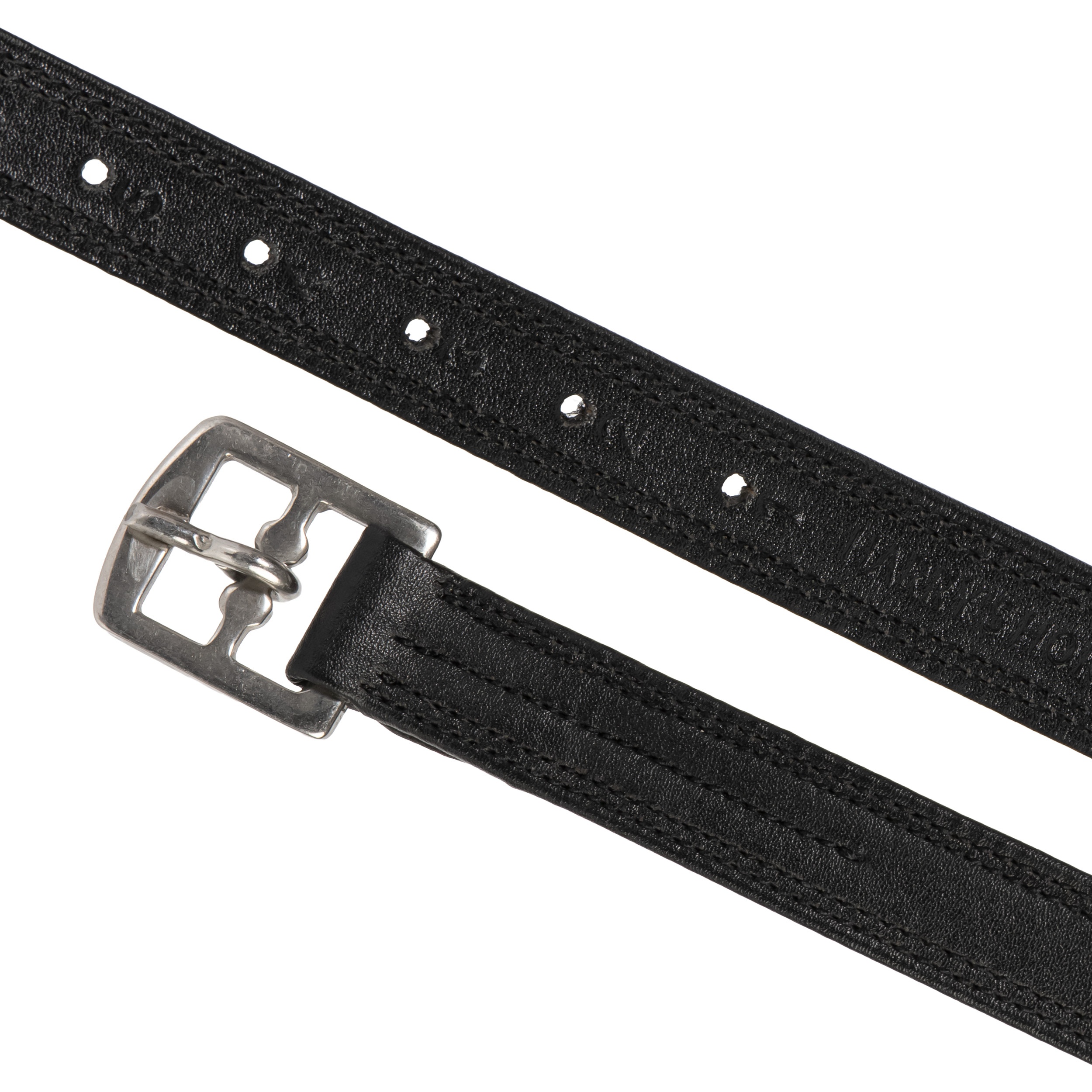 Synthetisch lederen beugelriemen met zilverkleurige gesp. Versterkt met nylon voor extra stevigheid. Deze Easy Care beugelriemen nemen geen vocht op, zijn sterk en onderhoudsarm.