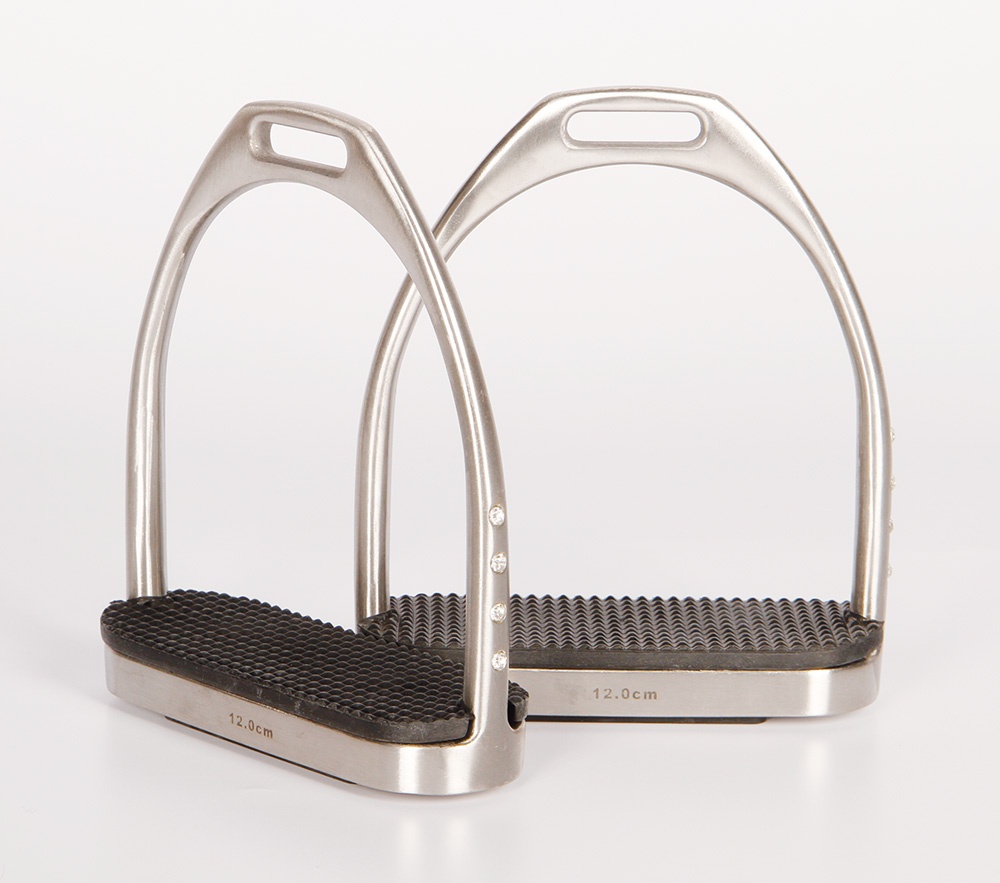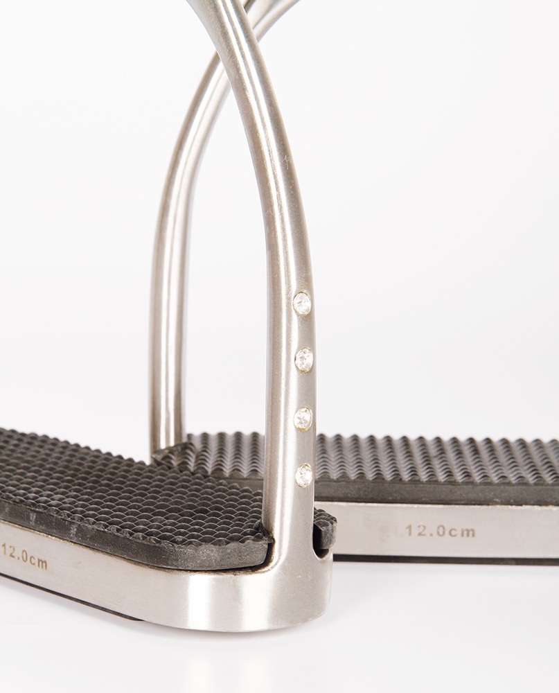 Vervaardigd van hoogwaardig RVS en aan de zijkant ingelegd met een rij van vier crystallen. Brushed steel matte afwerking. Inclusief beugelzooltjes.
