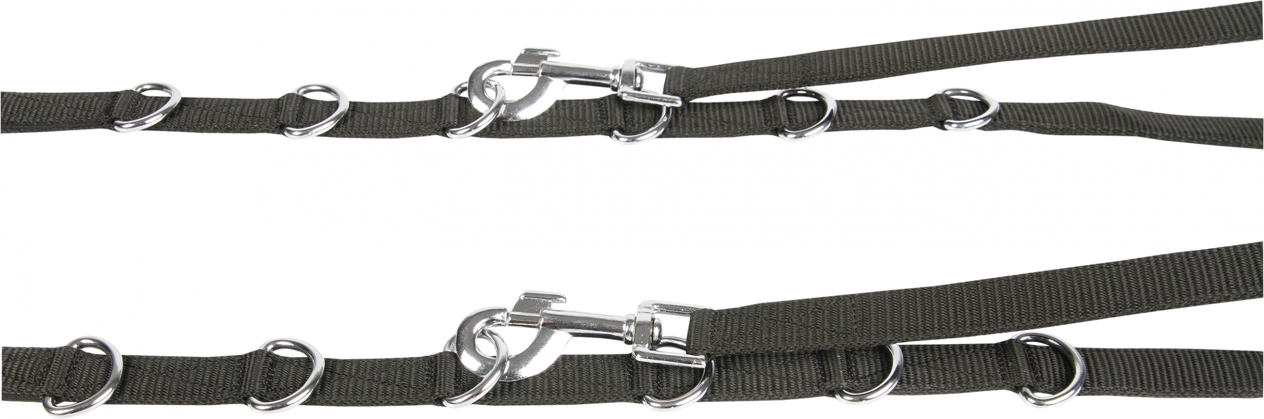 Eenvoudig verstelbare bijzetteugels door de D-ringen, te gebruiken tijdens het rijden, longeren of aan de hand werken, deels onderlegd met elastiek.