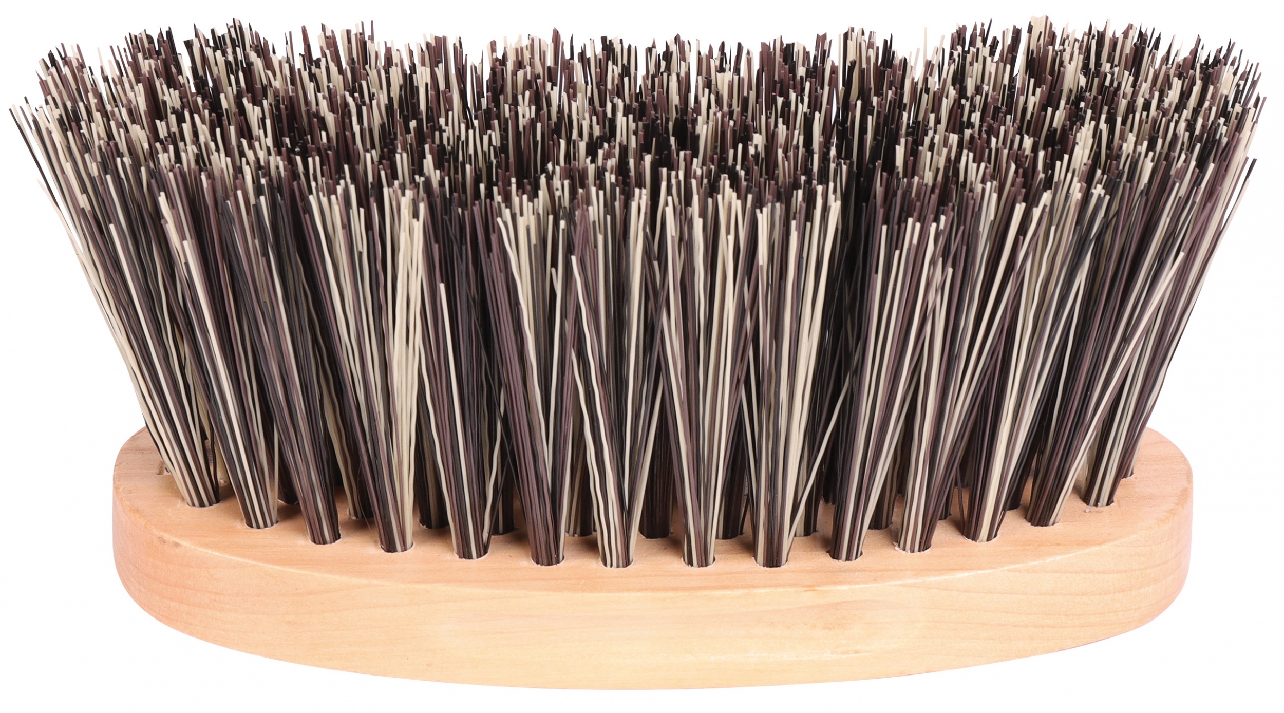 Deze banaan vormige houten borstel is voorzien van medium harde haren van polyester. Medium harde haren zorgen voor grondige reiniging zonder irritatie. De polyester haren zijn slijtvast en weerbestendig en geschikt voor nat en droog gebruik en voor dagelijkse verzorging. Comfortabel voor het paard en effectief bij vuilverwijdering.