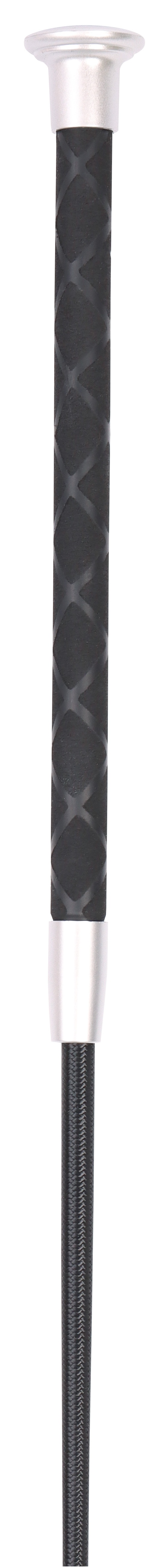 Luxe dressuurzweep met een gedecoreerd mat zwart handvat en leuke mat metallic dop. Lengte is gemeten exclusief de slag van 10cm.