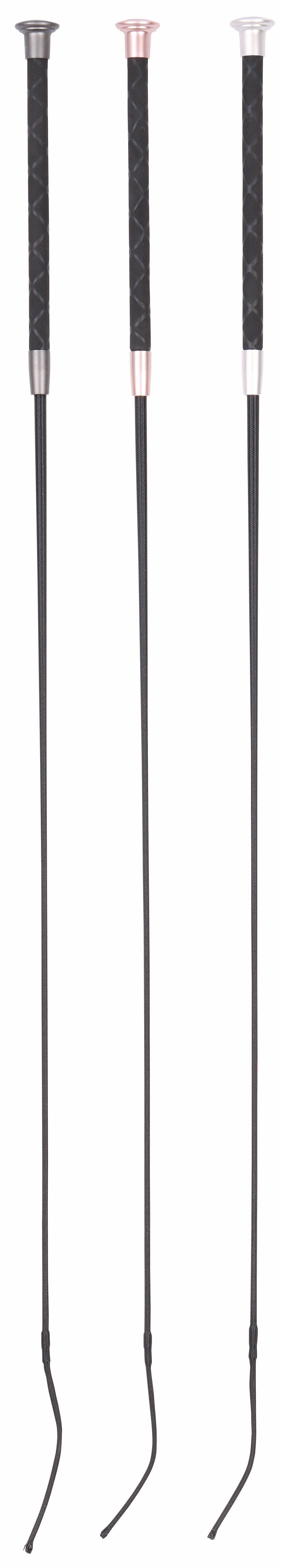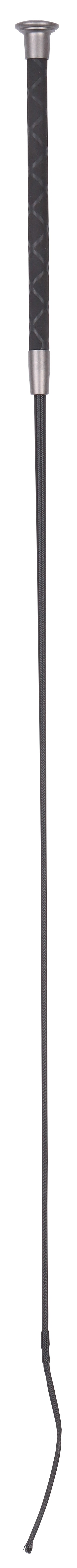Luxe dressuurzweep met een gedecoreerd mat zwart handvat en leuke mat metallic dop. Lengte is gemeten exclusief de slag van 10cm.