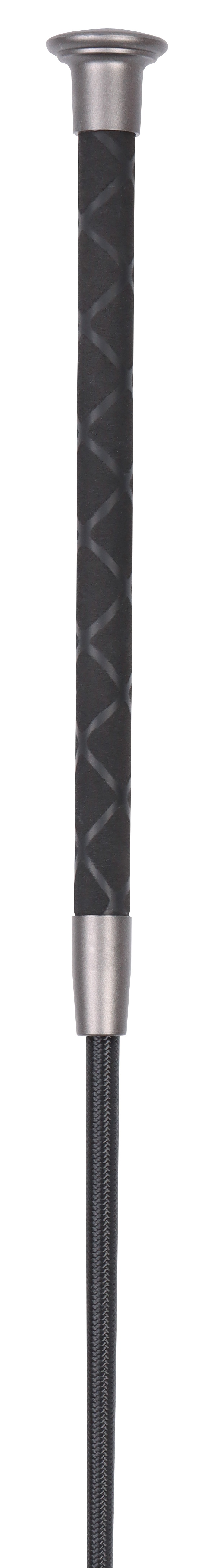 Luxe dressuurzweep met een gedecoreerd mat zwart handvat en leuke mat metallic dop. Lengte is gemeten exclusief de slag van 10cm.