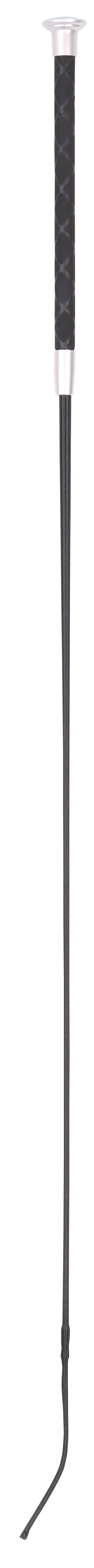 Luxe dressuurzweep met een gedecoreerd mat zwart handvat en leuke mat metallic dop. Lengte is gemeten exclusief de slag van 10cm.