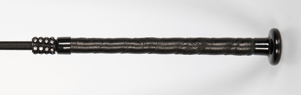 Lederen handvat met titanium knop, nylon gevlochten steel met crystal en slag. Lengte is excl. slag 10cm.