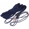 Opties Dubbele longeerlijn bestaat uit twee ronde koorden, te bevestigen aan de bitringen door middel van twee rosegouden muskatonnen. Daarna gaat dit over in een plat, soft webbing lijn. Lengte rond koord: 220cm (vanaf gesp tot leder verbindingsstuk). Lengte platte lijn: 1480cm. Materiaal: soft nylon.