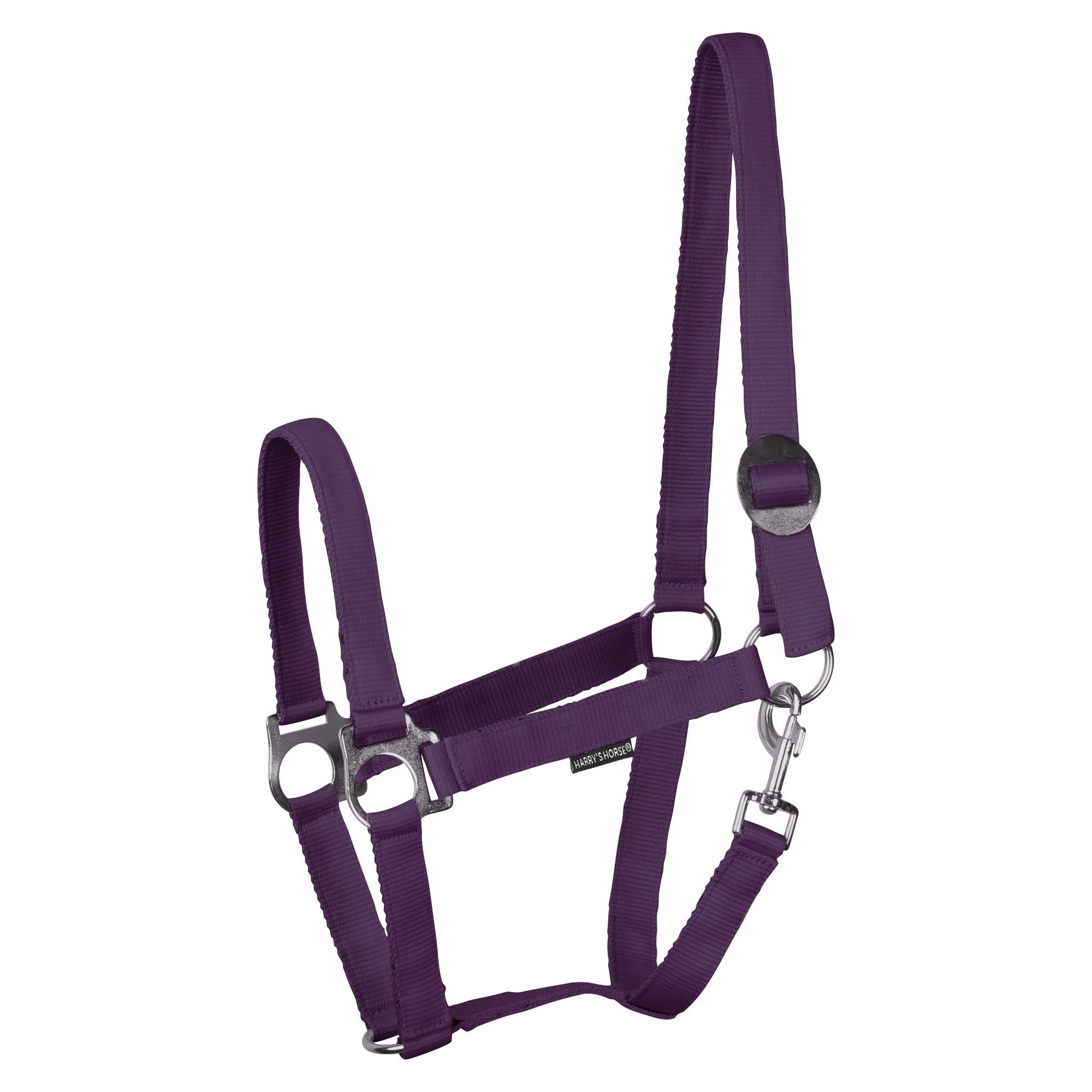 Basis halster met zilverkleurige fournituren. Verstelbaar op kopstuk door middel van een schuifgesp. Materiaal: polypropyleen