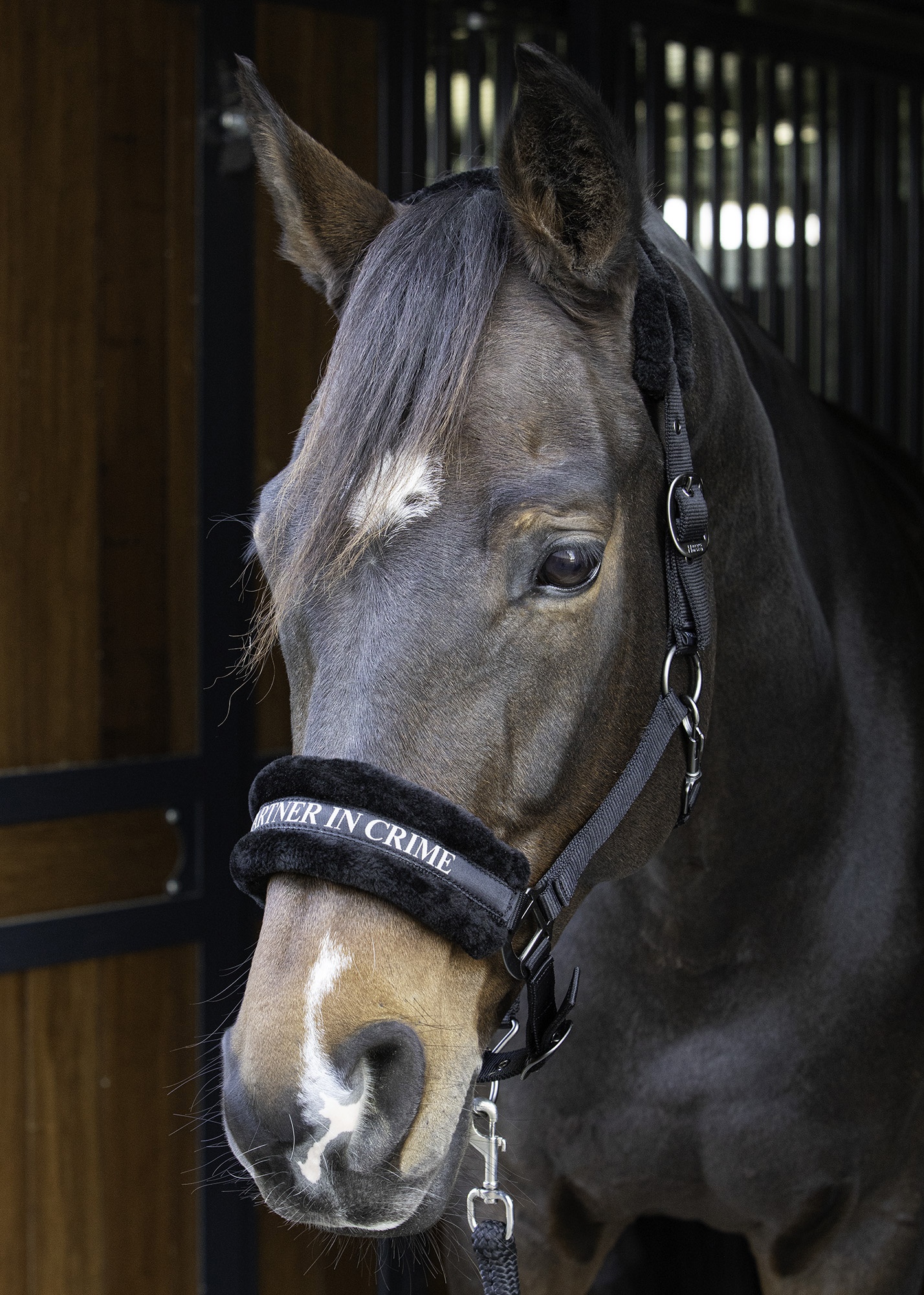 Opties Halster met grappige tekst. Onderlegd met zacht zwart kunstbont. Verstelbaar aan beide kanten van het kopstuk en aan de kaak. De gaatjes zijn voorzien van oogjes. Zwart: PARTNER IN CRIME Navy: BORN 2 RIDE Roze: GIRL POWER Lime: HEY BIG SPENDER Lila: IT'S A KIND OF MAGIC Fuchsia: SHINE BRIGHT LIKE A DIAMOND