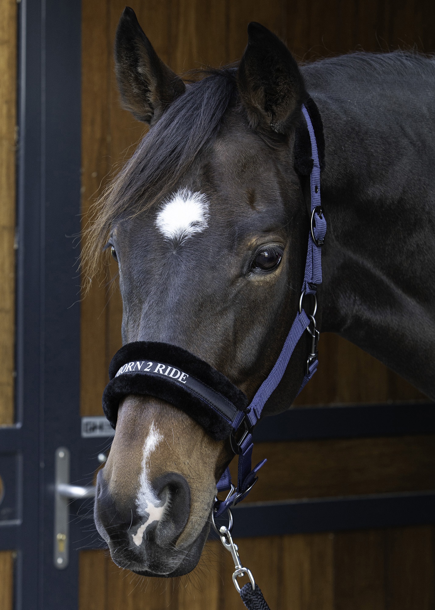Halster met grappige tekst. Onderlegd met zacht zwart kunstbont. Verstelbaar aan beide kanten van het kopstuk en aan de kaak. De gaatjes zijn voorzien van oogjes. Zwart: PARTNER IN CRIME Navy: BORN 2 RIDE Roze: GIRL POWER Lime: HEY BIG SPENDER Lila: IT'S A KIND OF MAGIC Fuchsia: SHINE BRIGHT LIKE A DIAMOND