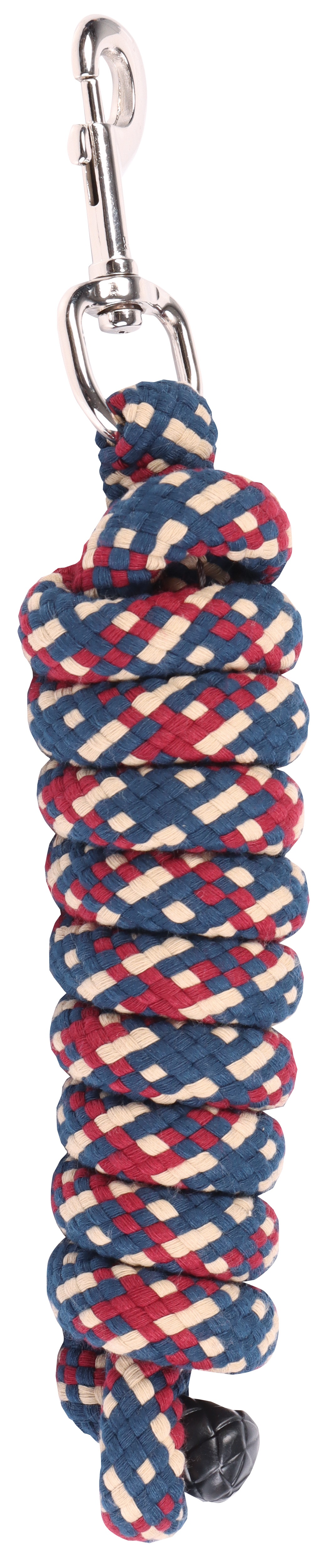Opties Stevig gevlochten halstertouw met gevulde kern. Bijzonder sterk, materiaal wordt ook gebruikt in touwen voor bergklimsport. Zilverkleurige musketon. Lengte: 200cm. Materiaal: Tetlon.