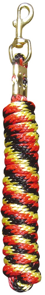 Extra lange, gevlochten halstertouw met goudkleurige musketon. Lengte: 300cm. Materiaal: polypropyleen.
