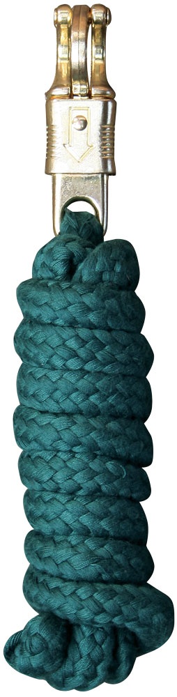 Gevlochten halstertouw met goudkleurige paniekhaak. Lengte 200cm. Materiaal: polyethyleen