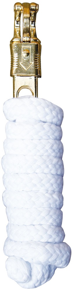 Gevlochten halstertouw met goudkleurige paniekhaak. Lengte 200cm. Materiaal: polyethyleen