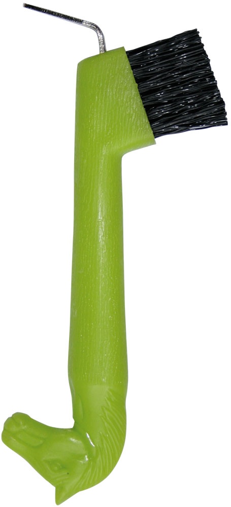 Sterke kunstof hoevenkrabber met borstel en paardenhoofd.