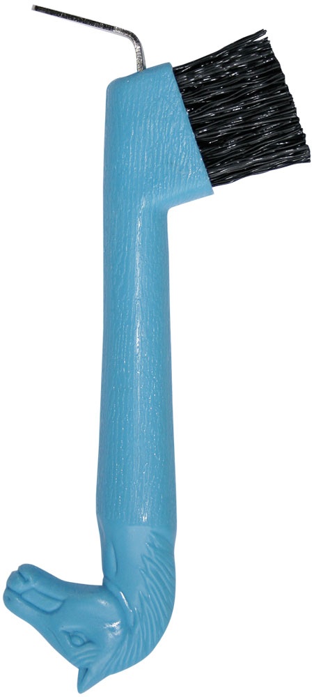 Sterke kunstof hoevenkrabber met borstel en paardenhoofd.